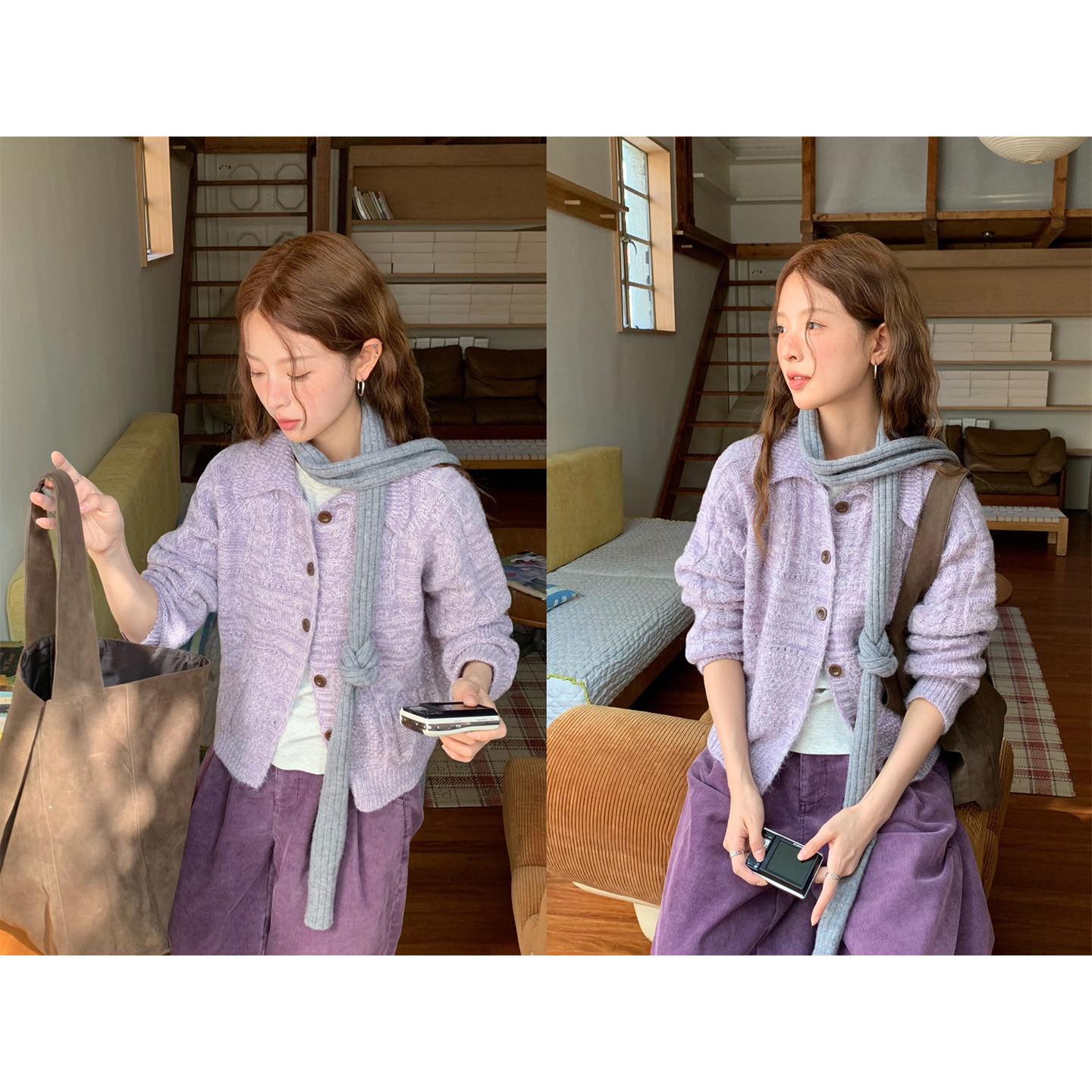 秋季 混色毛线麻花翻领针织毛衣开衫 CCKOK 软糯温柔外套女 现货