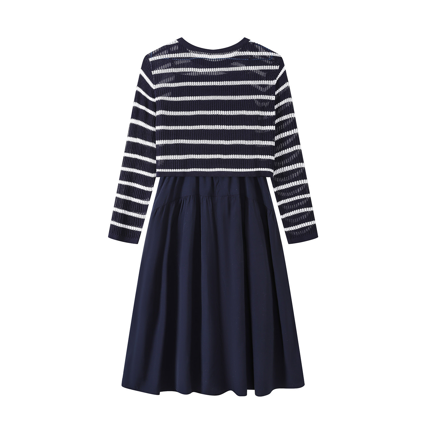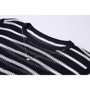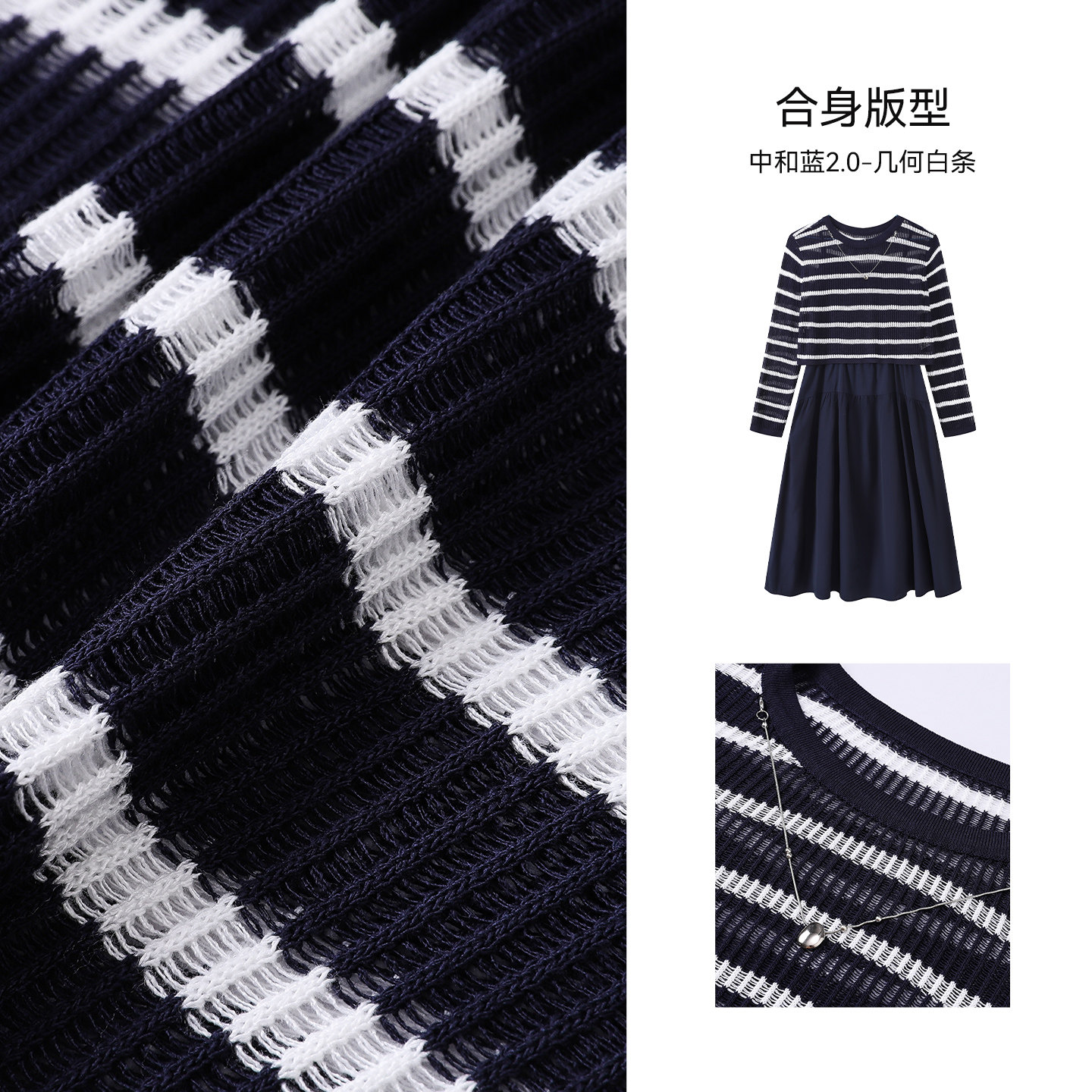 条纹吊带外搭镂空罩衫 中和休闲合身两件套连衣裙女2025秋季 新款