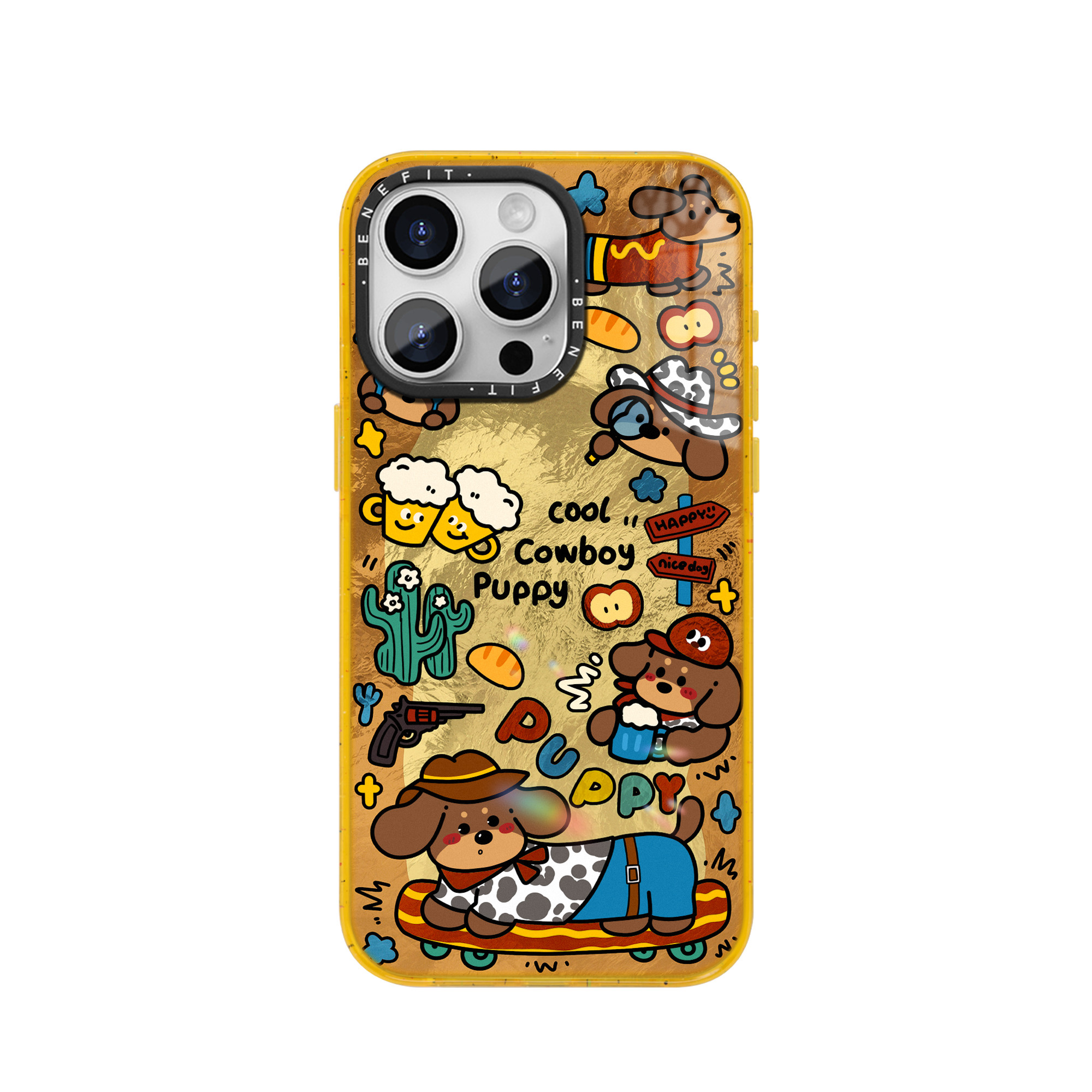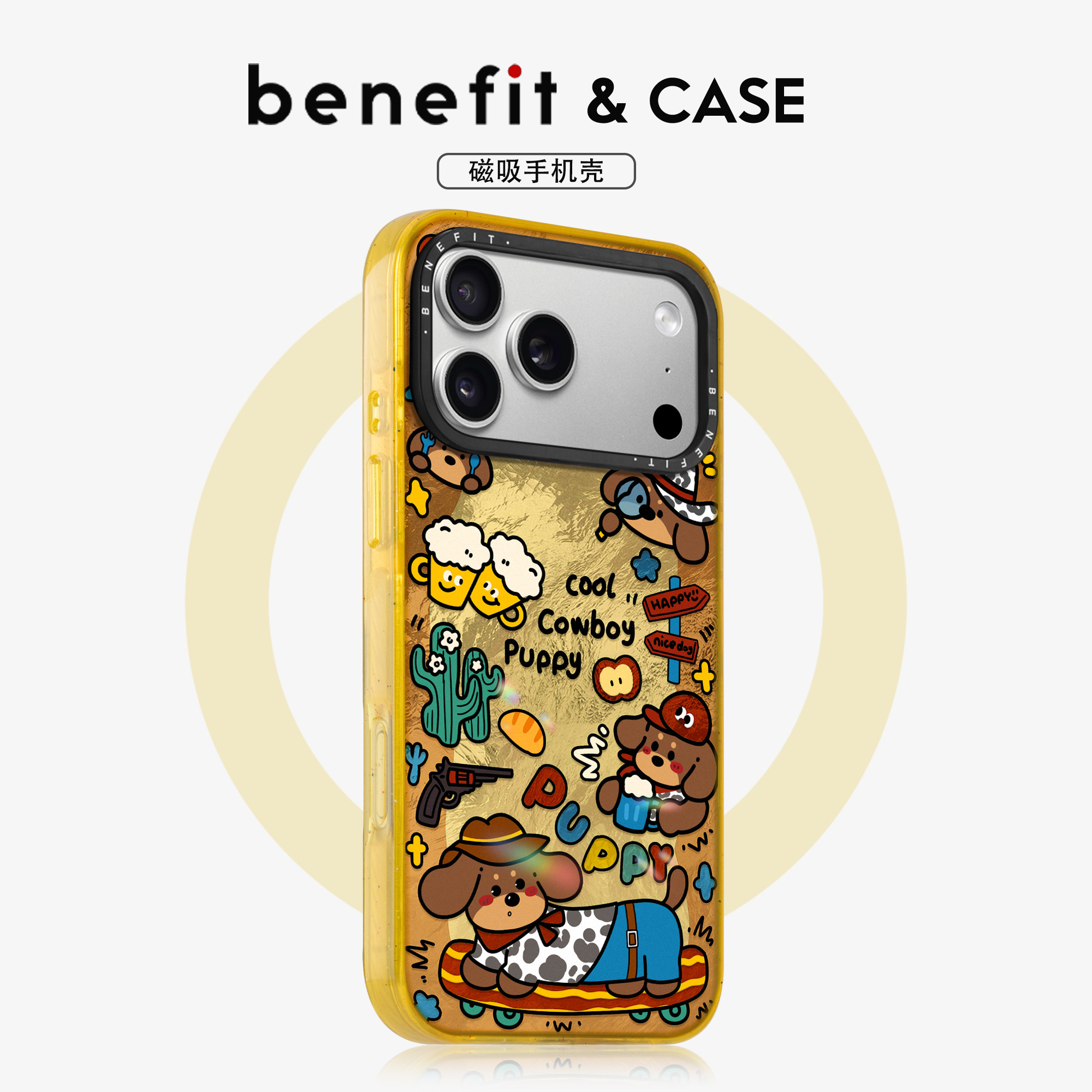 benefit复古卡通牛仔腊肠狗适用于iphone17promax苹果16PRO晶盾磁吸手机壳15新款 13防摔套14冰川纹12彩色边框