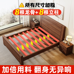 床实木床现代简约1.5m主卧家用橡木床架胡桃色1.8m全实木床双人床