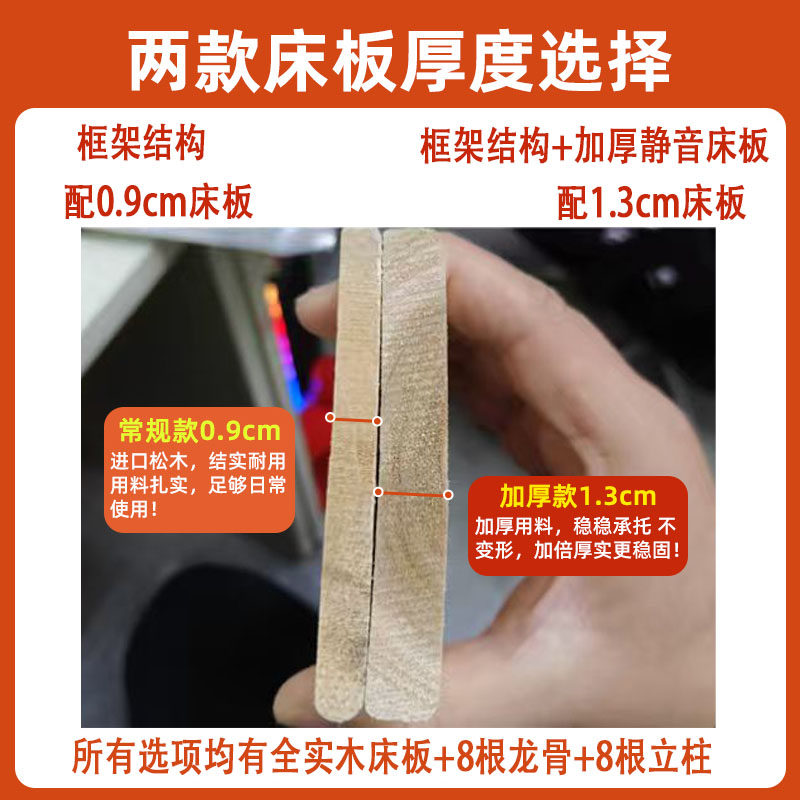 全实木床软包床家用卧室办公室松木1.5m双人床出租屋床1.2m单人床