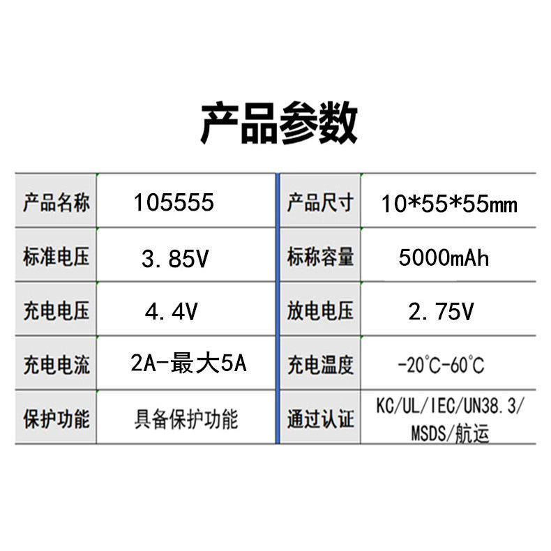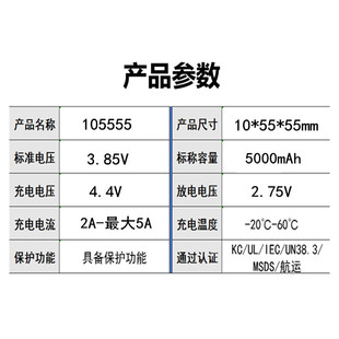 嘉尚105555聚合物5000mAh锂电池高压3.85V快充充电宝软包电芯