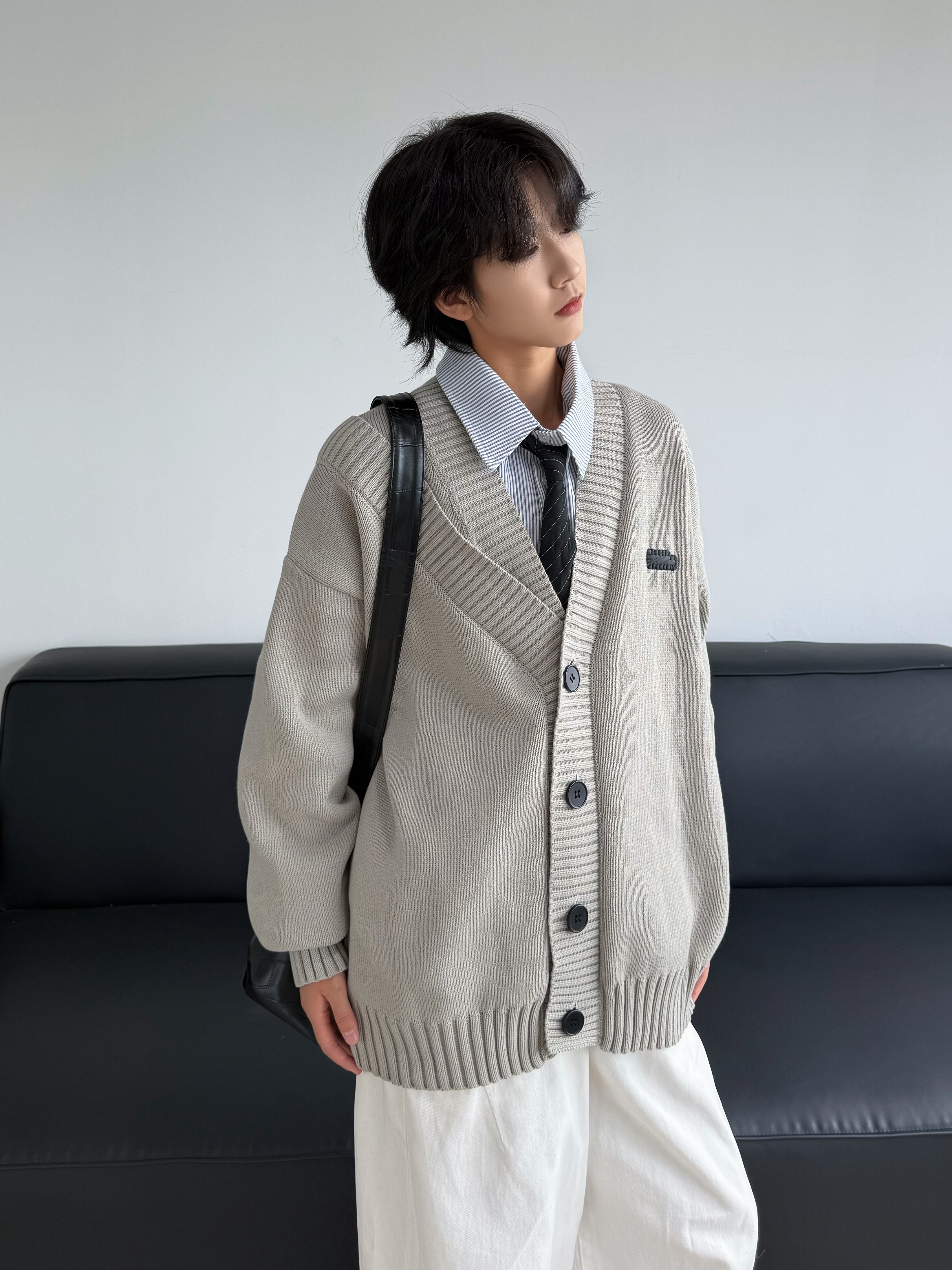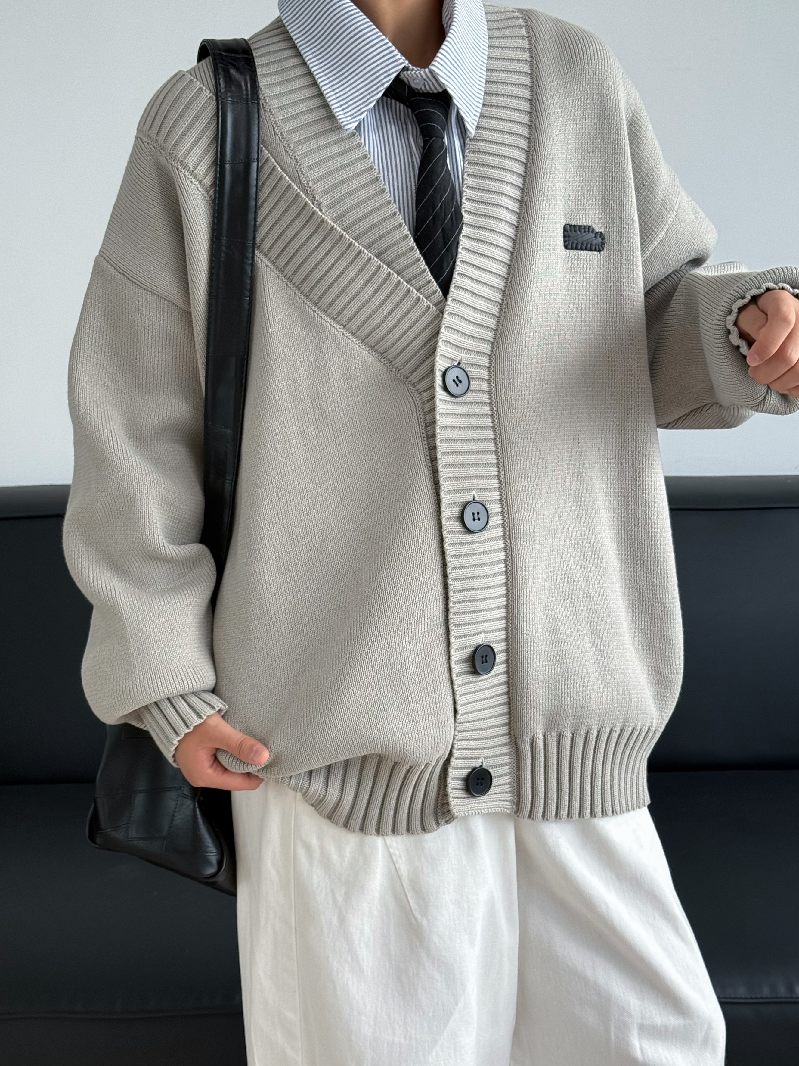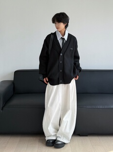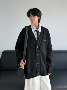19otiwtt日系复古加厚开衫 男 毛衣宽松休闲双领设计外套慵懒针织衫