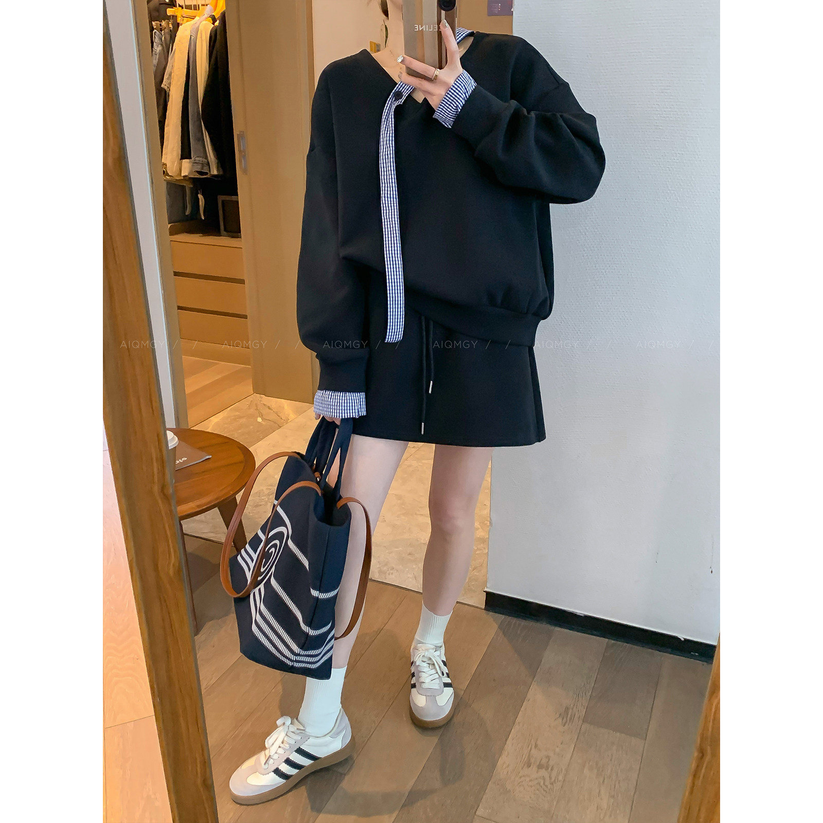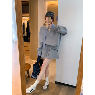 裙女2025年秋冬新款 套装 V领卫衣半身裙两件套 灰色时尚 爱情魔鬼鱼