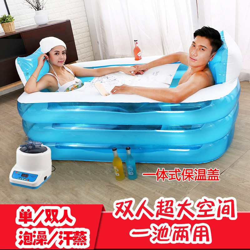 家用汗蒸箱充气泡澡浴缸双人情侣沐浴盆大人全身桑拿两用浴桶折叠