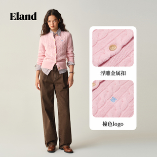 2025秋冬新 ELand衣恋毛衣女绞花针织开衫 绒感棉花糖含山羊绒