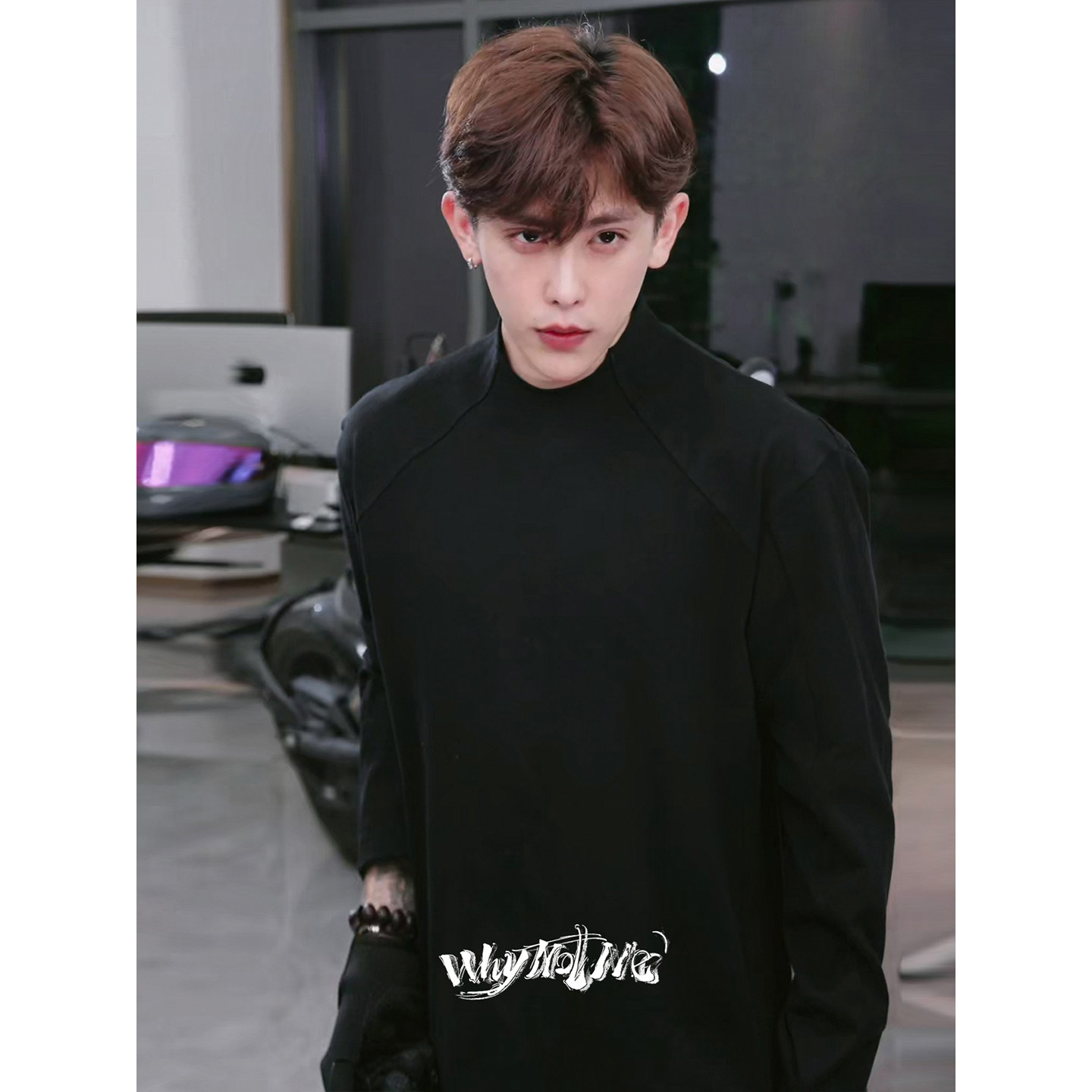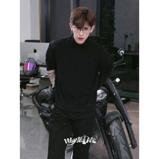 男长袖 正肩宽松显瘦黑色纯棉简约半高领打底衫 内搭新款 序77秋季