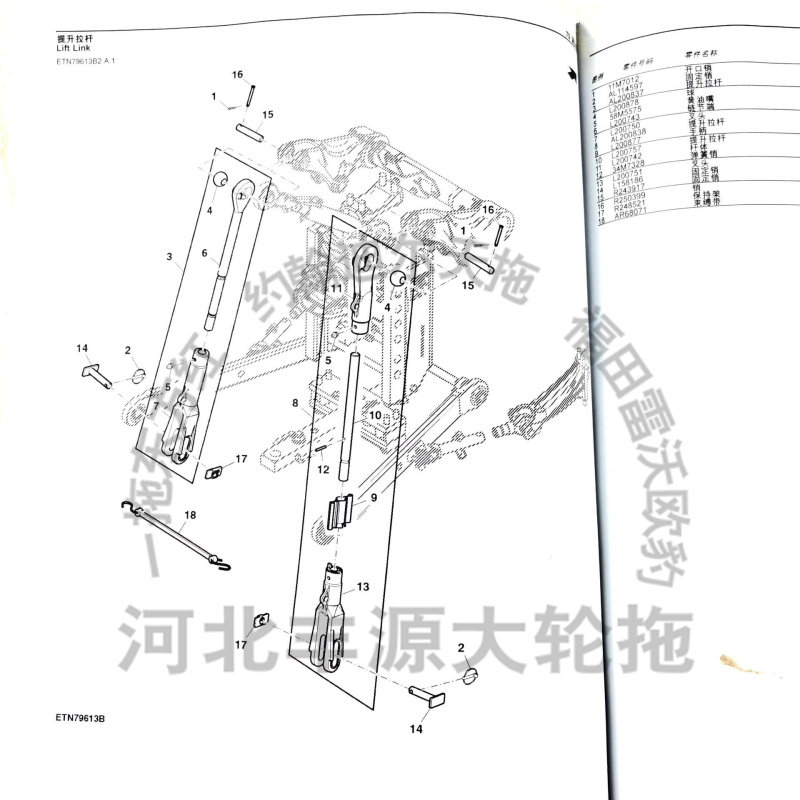 1354拖拉机立支柱提升杆AR68071下拉板束缚带 1204 迪尔904 1054