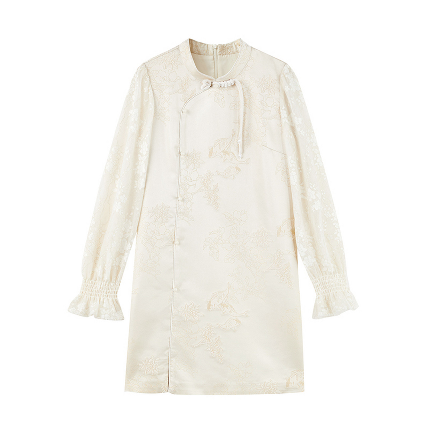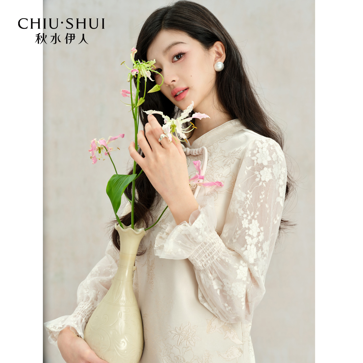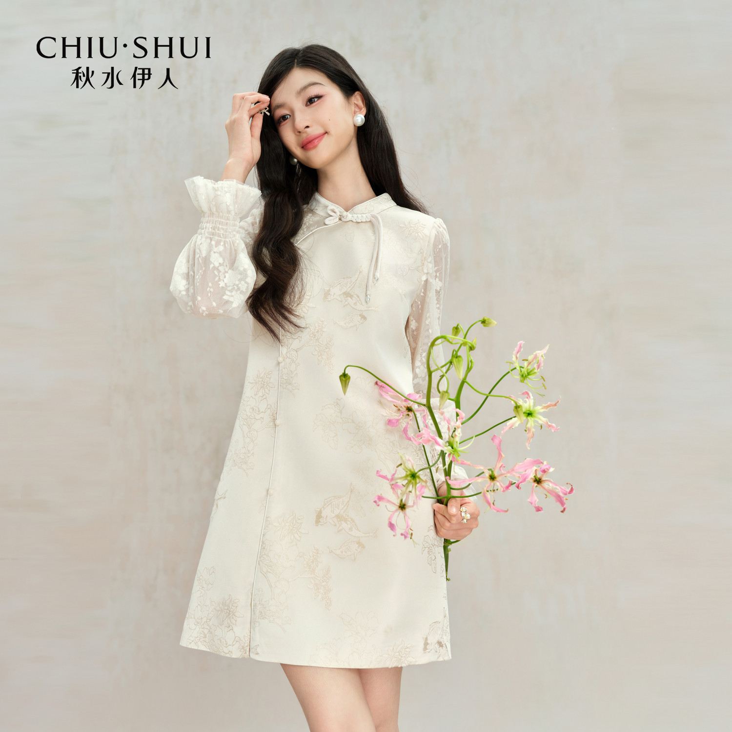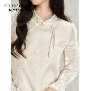 秋水伊人国风新中式 优雅蕾丝气质立领提花裙子 连衣裙2025秋冬新款