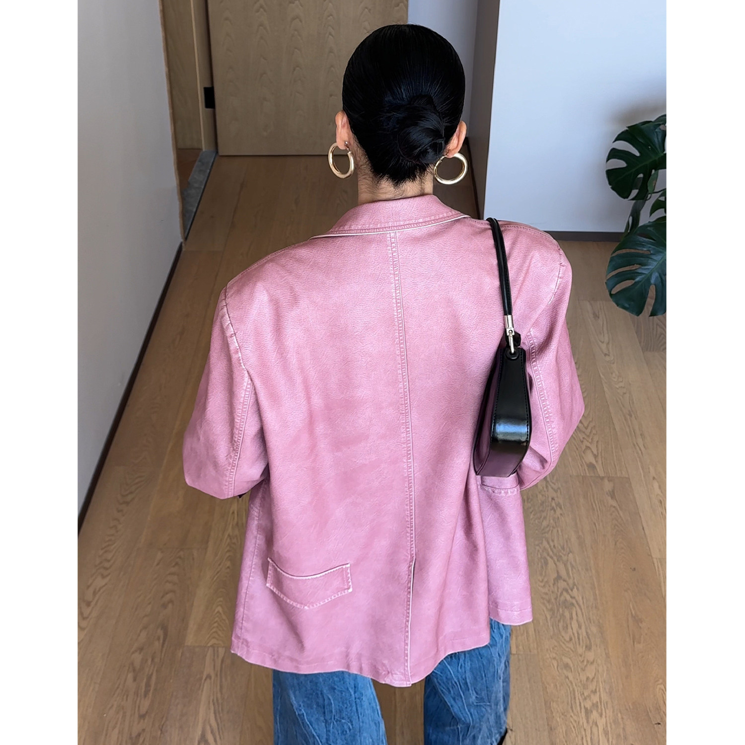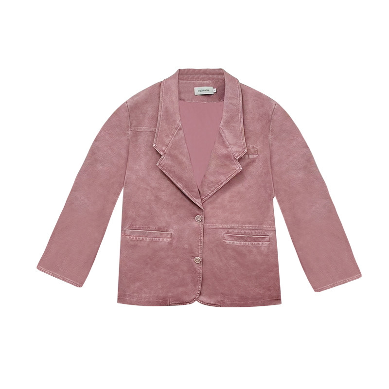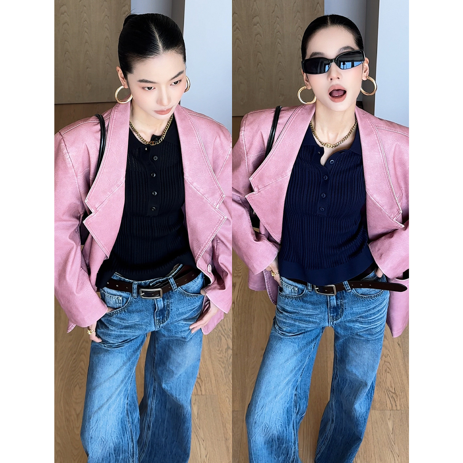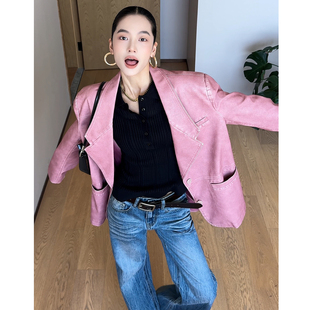 水云间软皮翻领皮衣夹克外套短款 上衣2025 人造革女复古中性风长袖