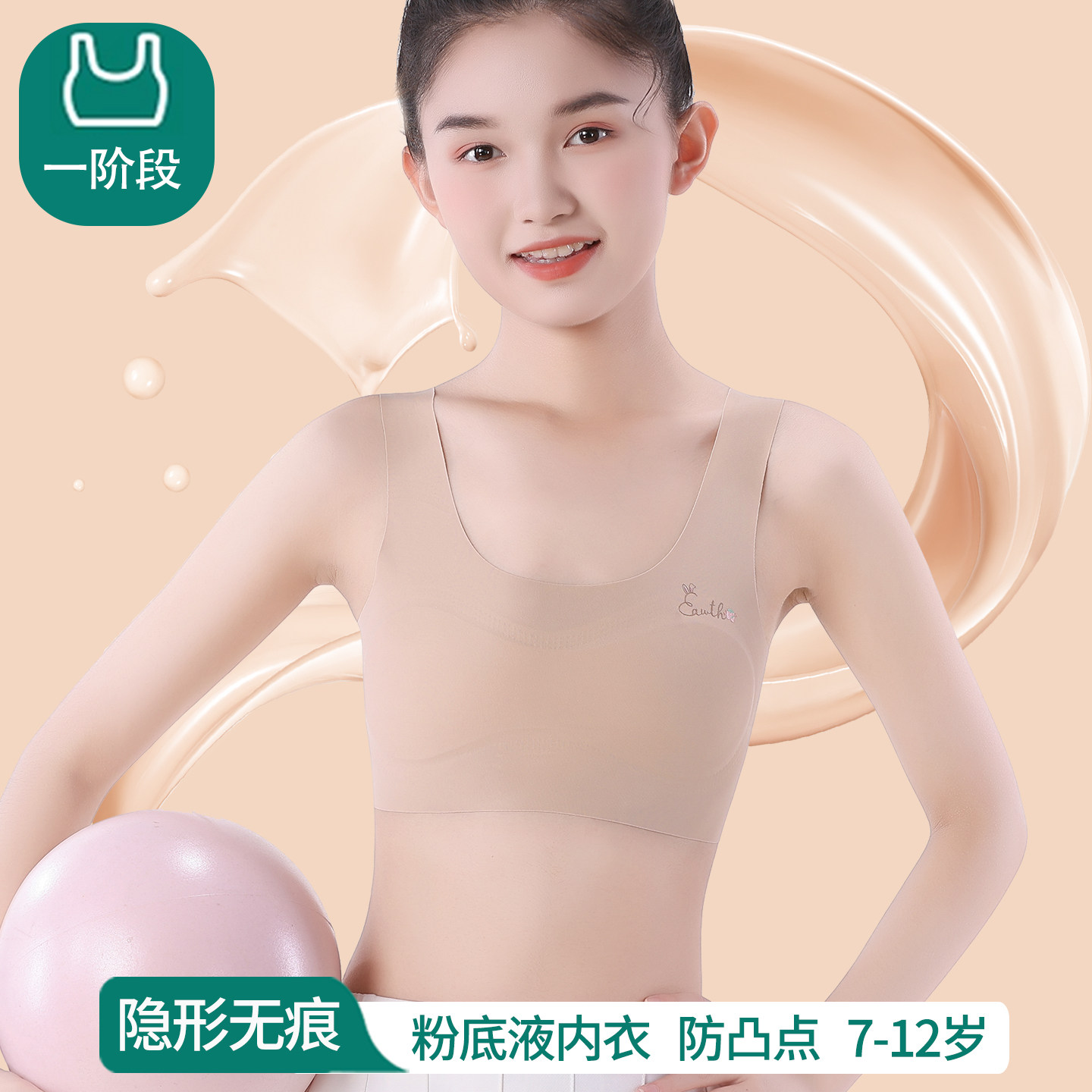 一阶段少女隐形粉底液内衣发育期女孩女儿童防凸点背心抹胸小学生