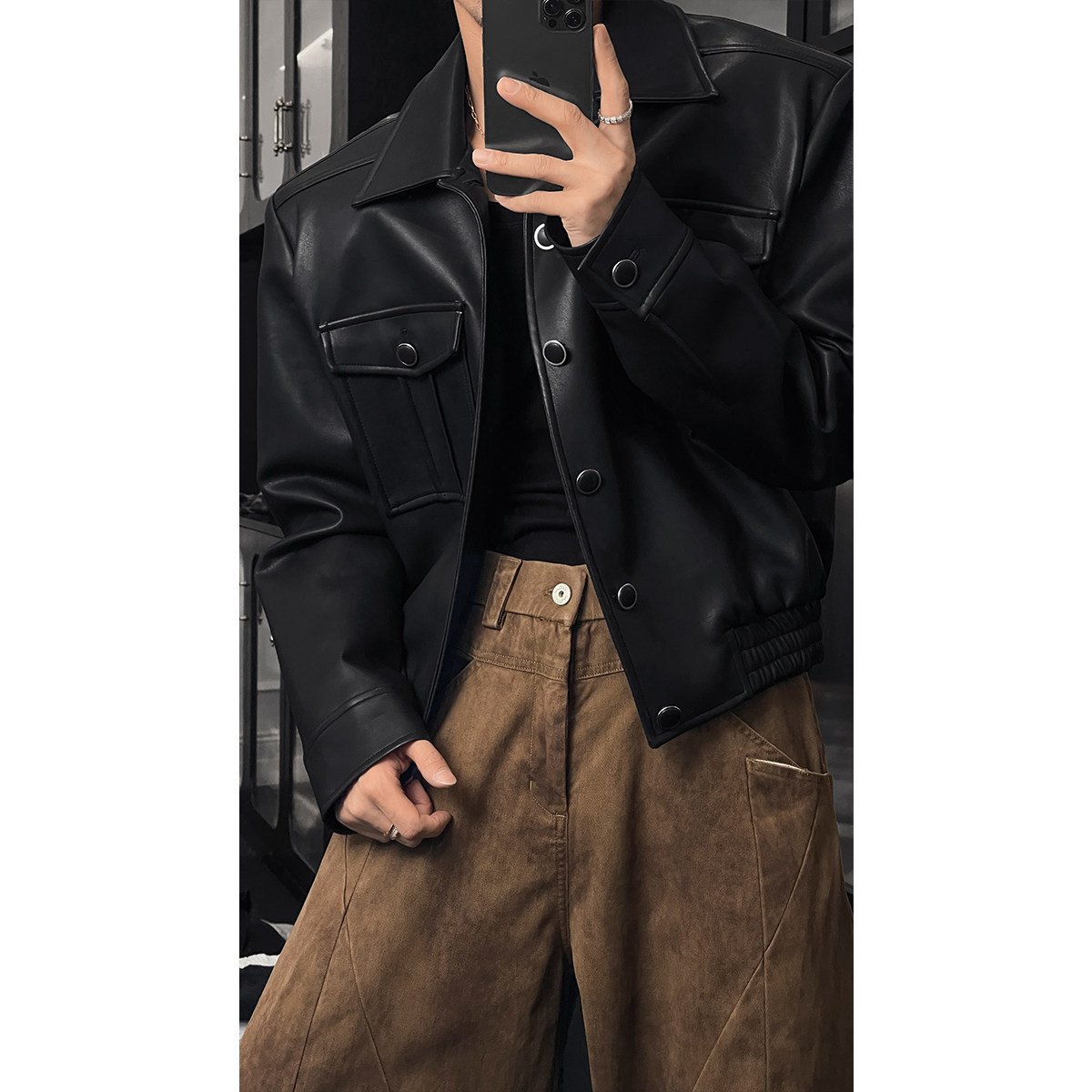 MXKM男士 休闲百搭立领PU软皮衣 高级感机车服皮夹克男外套2025美式