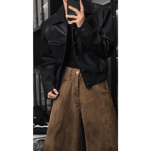 bosie伯喜2025年秋季 复古做旧水洗pu皮衣外套男情侣夹克百搭 新款