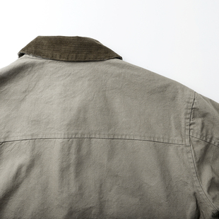 外套男秋 复古重磅圣达菲帆布夹克硬挺巴恩风翻领短款 马登工装 美式