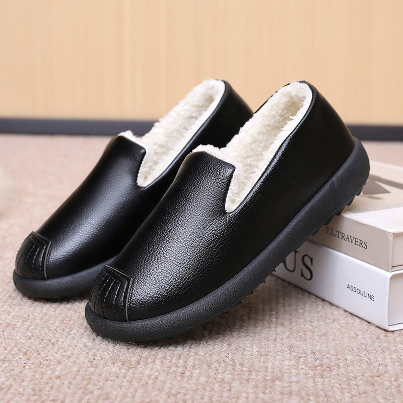 居家厚底保暖pu面防水中老年拖鞋 棉拖鞋 妈妈拖鞋 室内外冬季 女棉鞋