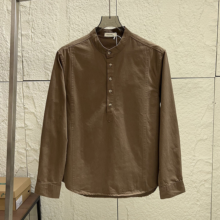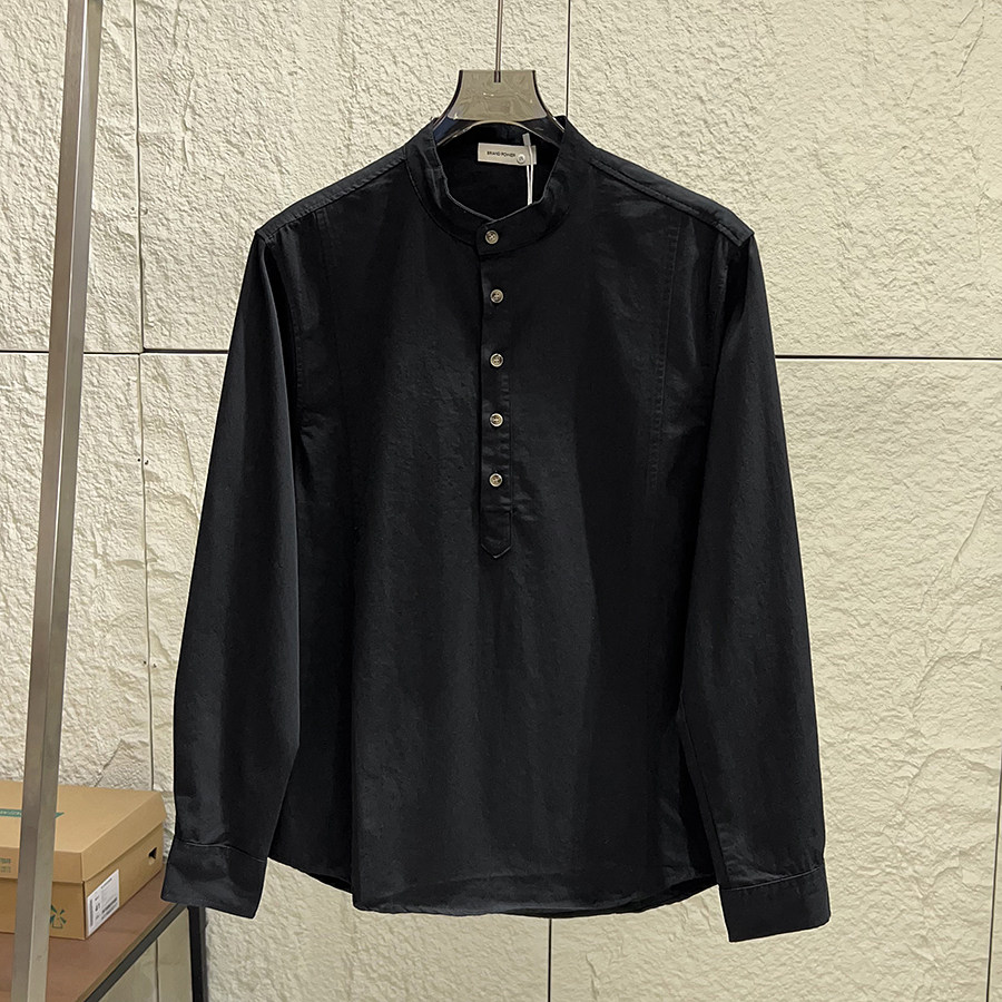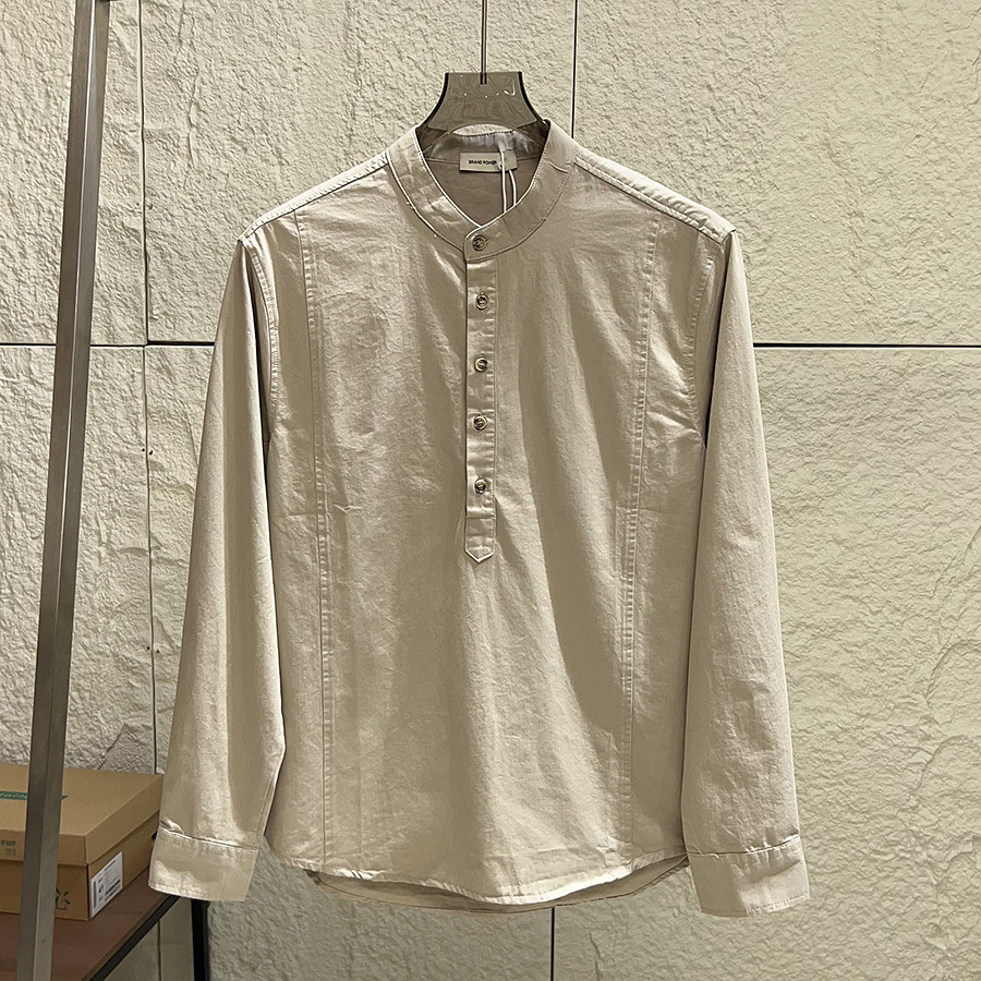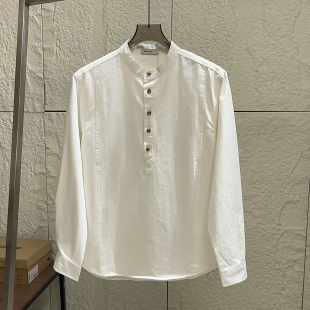 亲肤全棉水洗 衬衫 秋季 休闲纯色小立领宽松长袖 衬衣 男士 设计师线