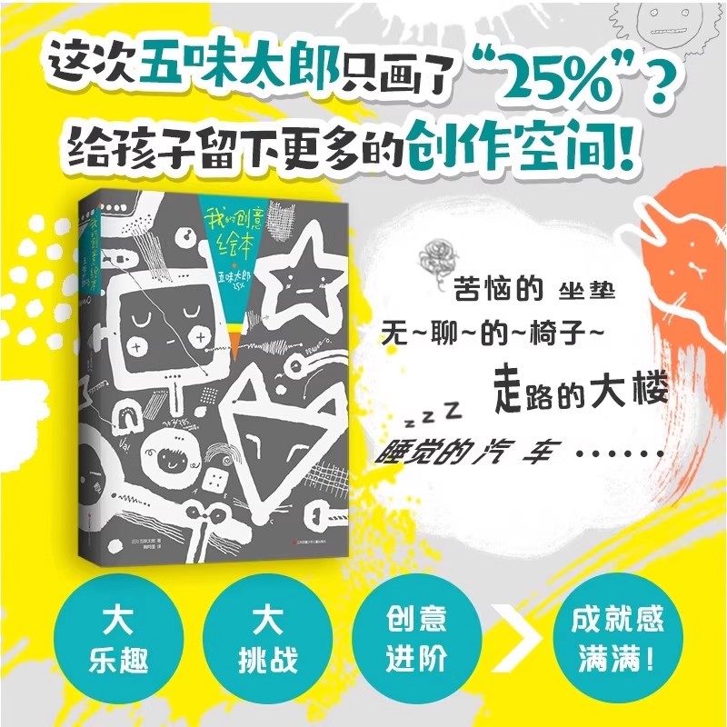 25%艺术启蒙涂鸦调动灵感创意锻炼思维能力3 创意绘本五味太郎50% 6岁创意思维艺术启蒙涂鸦大书籍 画一半你画一半我 官方正版