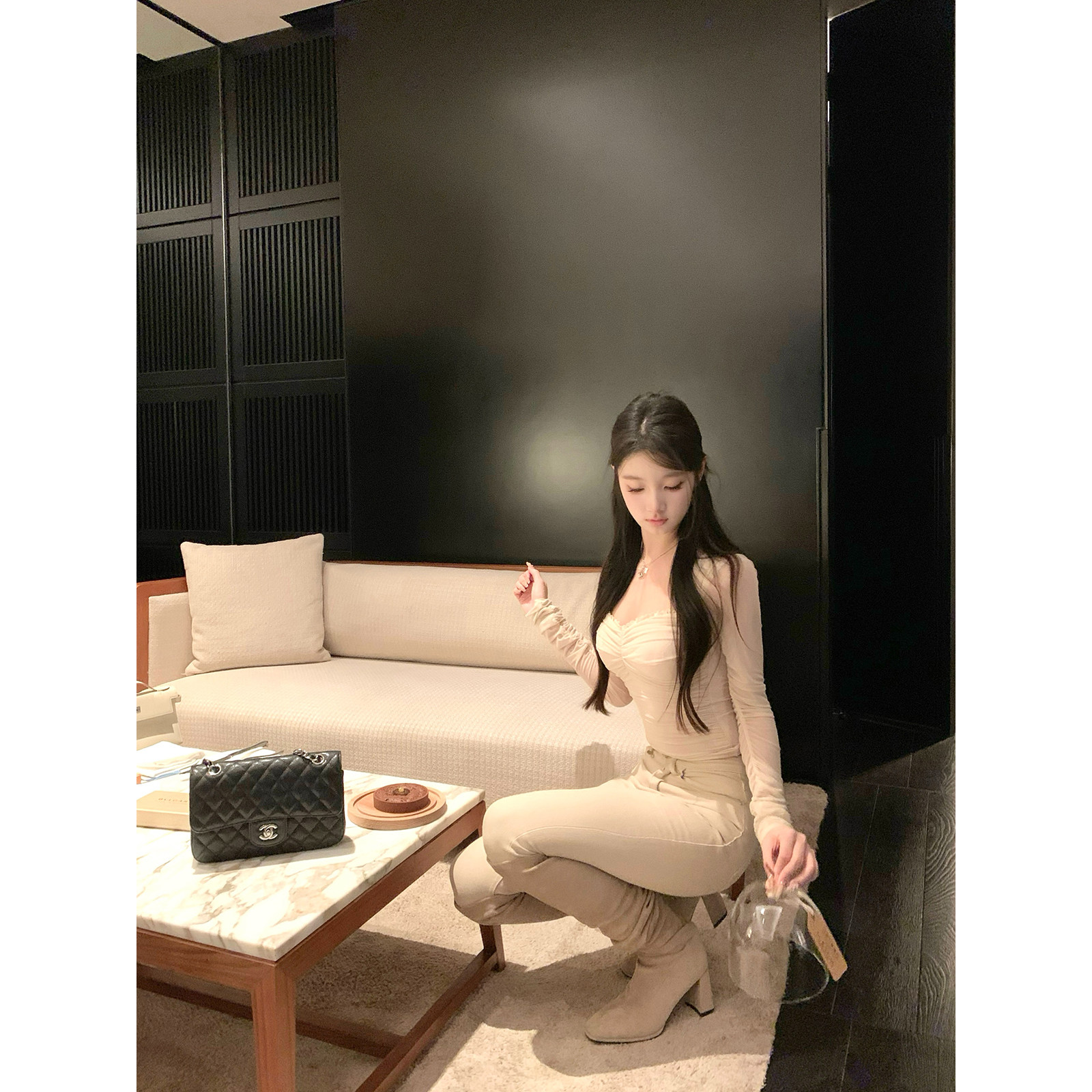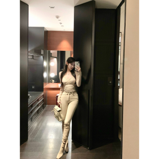 高腰显瘦显腿长灰杏色小脚紧身裤 腿精丰胯裤 热狗很辣 Hotdog