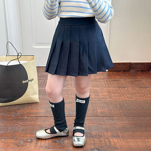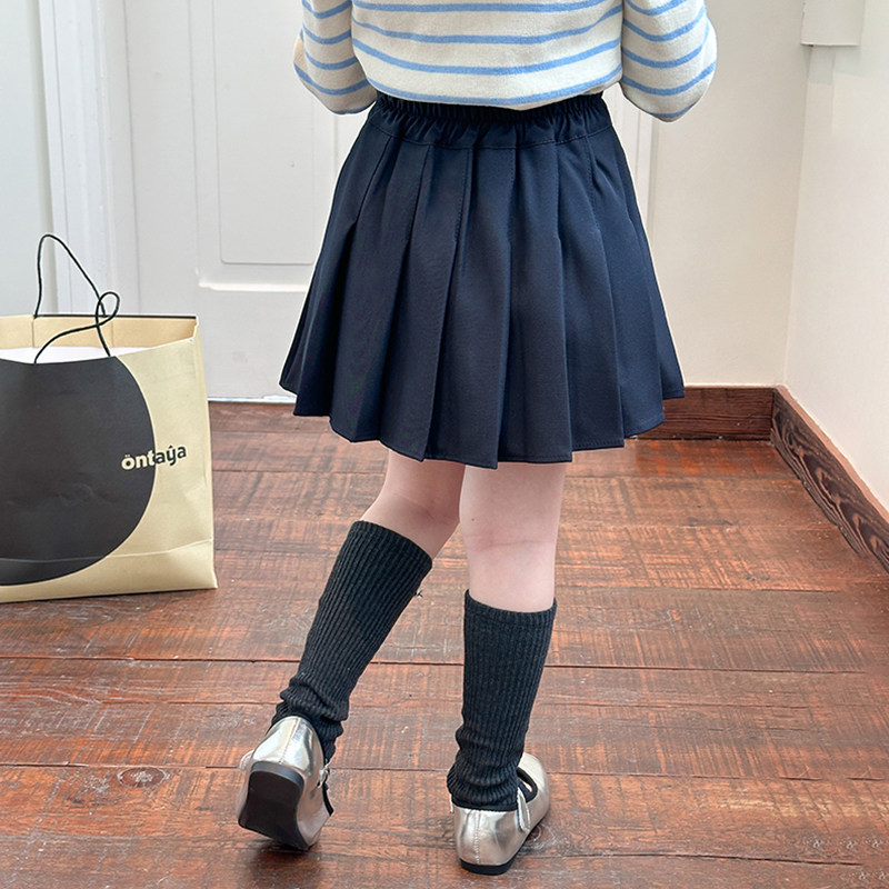 Yumi妈儿童学院风百褶裙女童秋装 25F010 裙子垂感半身短裙