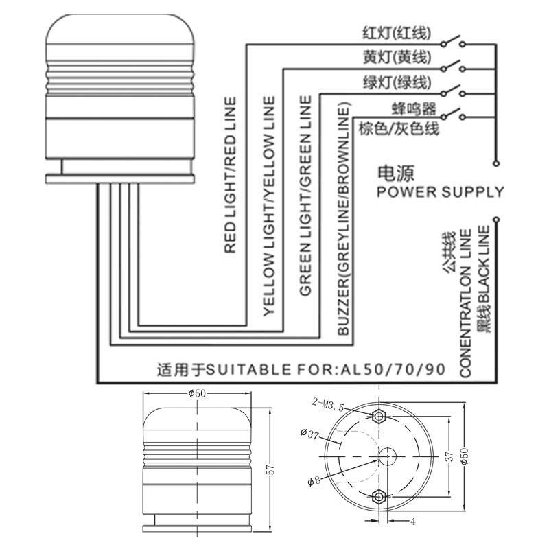 一层三色灯机器人24v声光报警器单体多色报警电子称LED警示灯12v