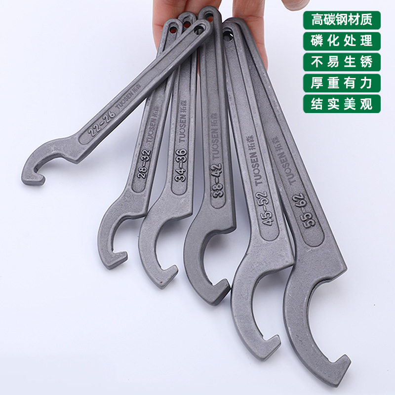 高碳钢勾头扳手4552水表盖钩形工具多功能7885机修月牙扳手专用