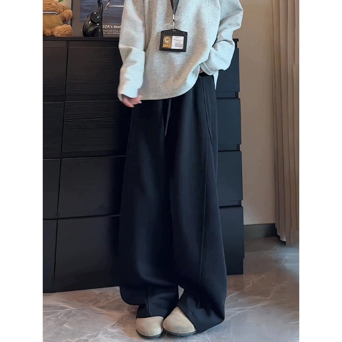 cleanfit运动休闲裤 黑色重磅弯刀卫裤 高级感垂感阔腿裤 秋季 男女款