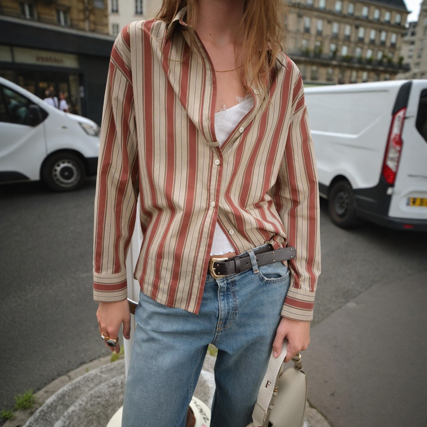 气质甜美系粉色条纹衬衫 衬衣情侣外套 女学生别致漂亮学院风长袖