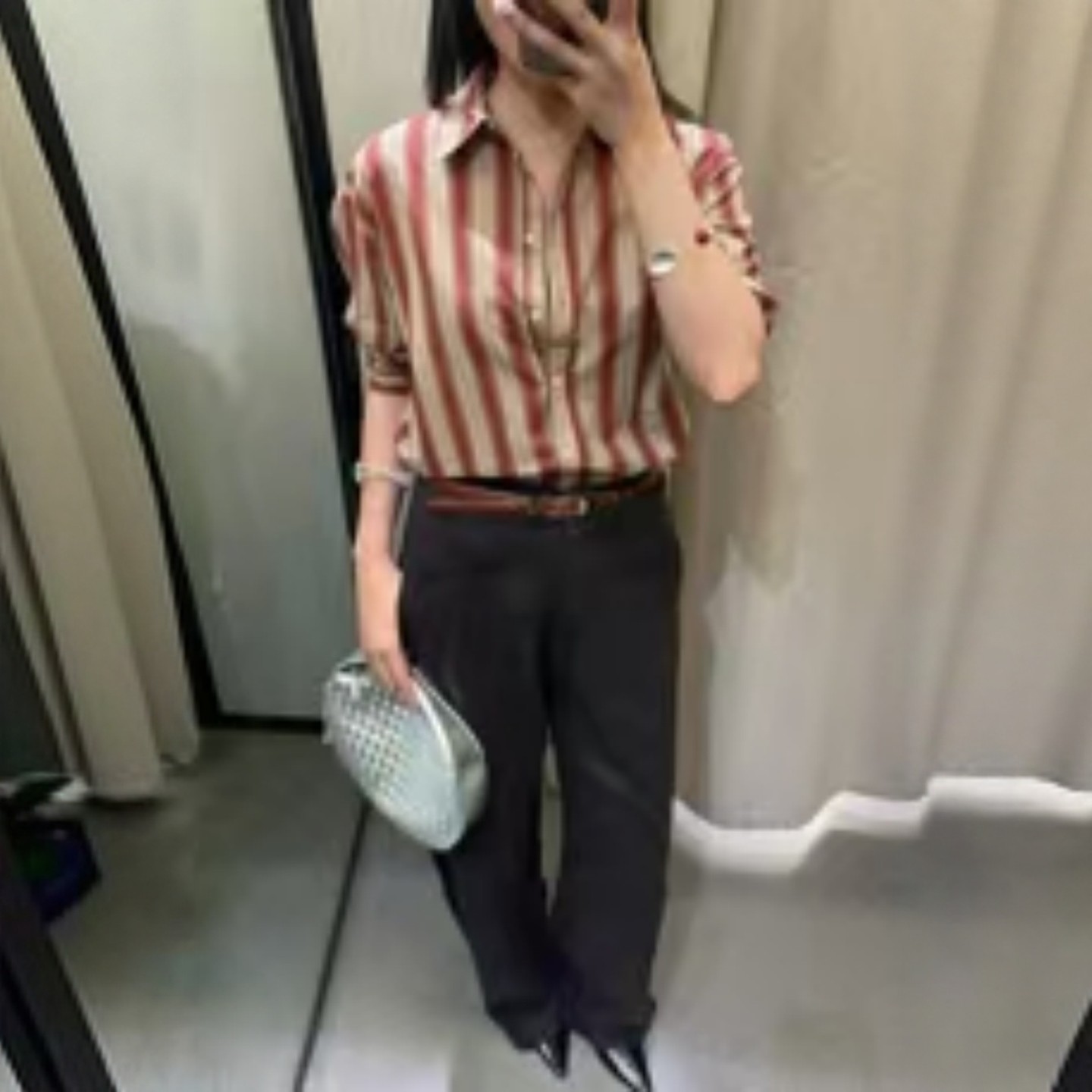 抗皱免烫醋酸衬衣 通勤面试气质上衣新款 高级感红色缎面衬衫 女长袖