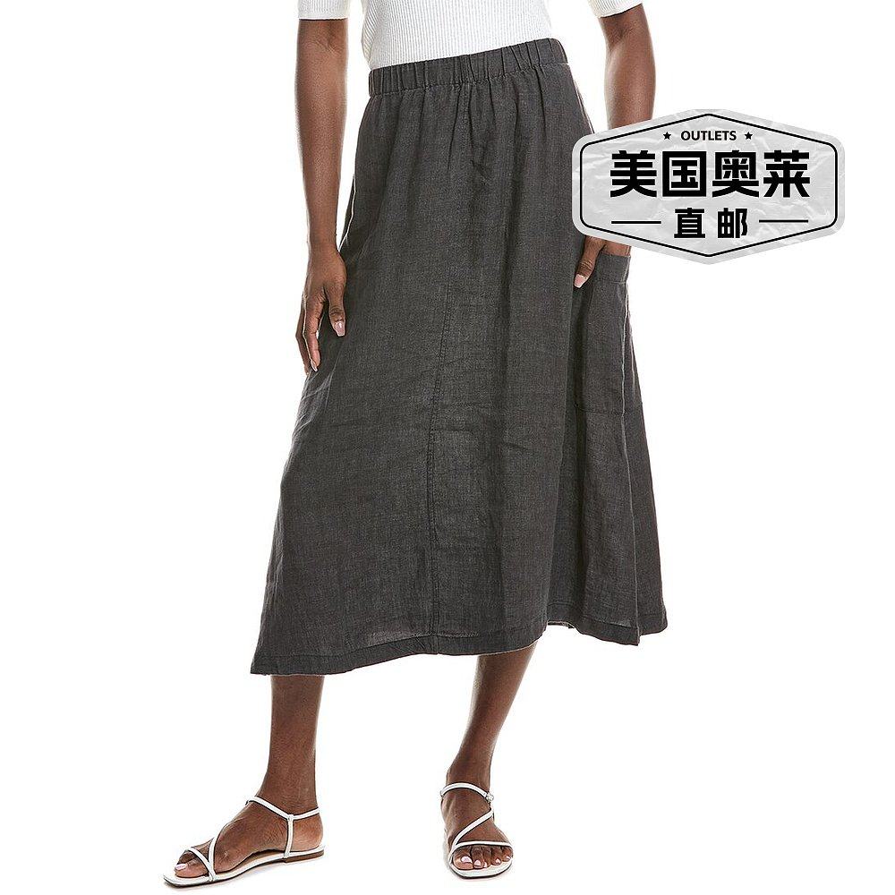 美国奥莱直发半身裙a字裙 灰色 自营EILEEN FISHER亚麻连衣裙