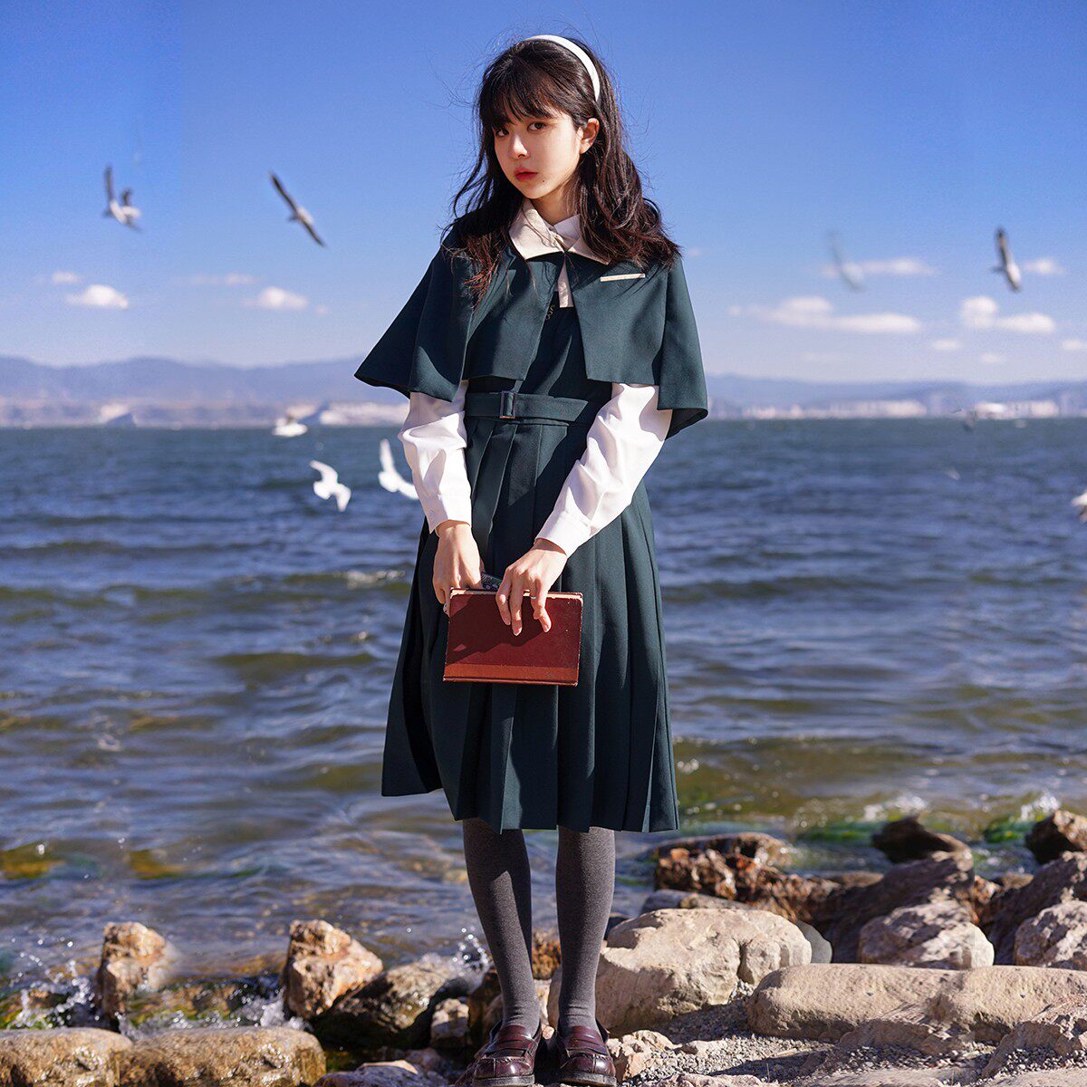 女 新年圣诞节斗篷假两件连衣裙长袖 樱花家族jk制服 格林童话