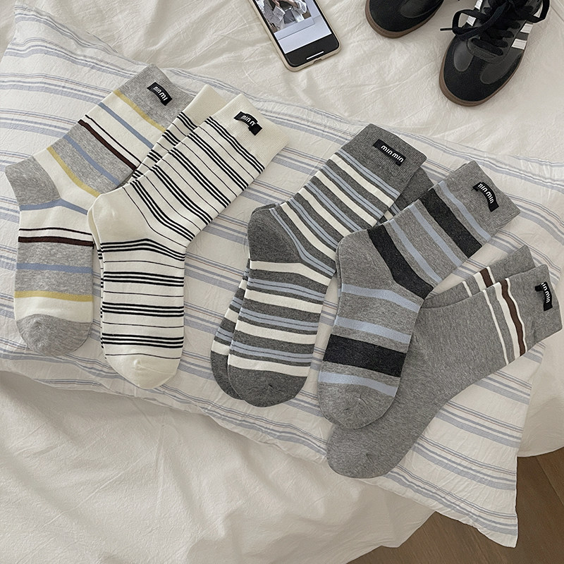 条纹袜子女长袜miu风布标堆堆中筒长袜 2025秋冬新款 起步韩袜
