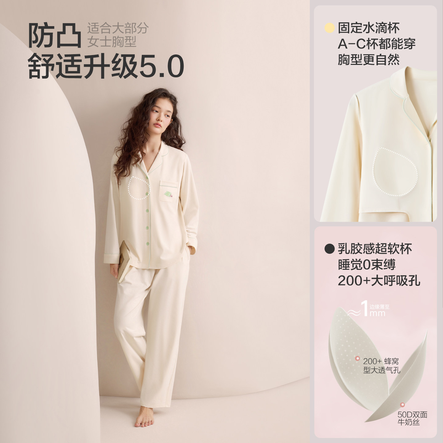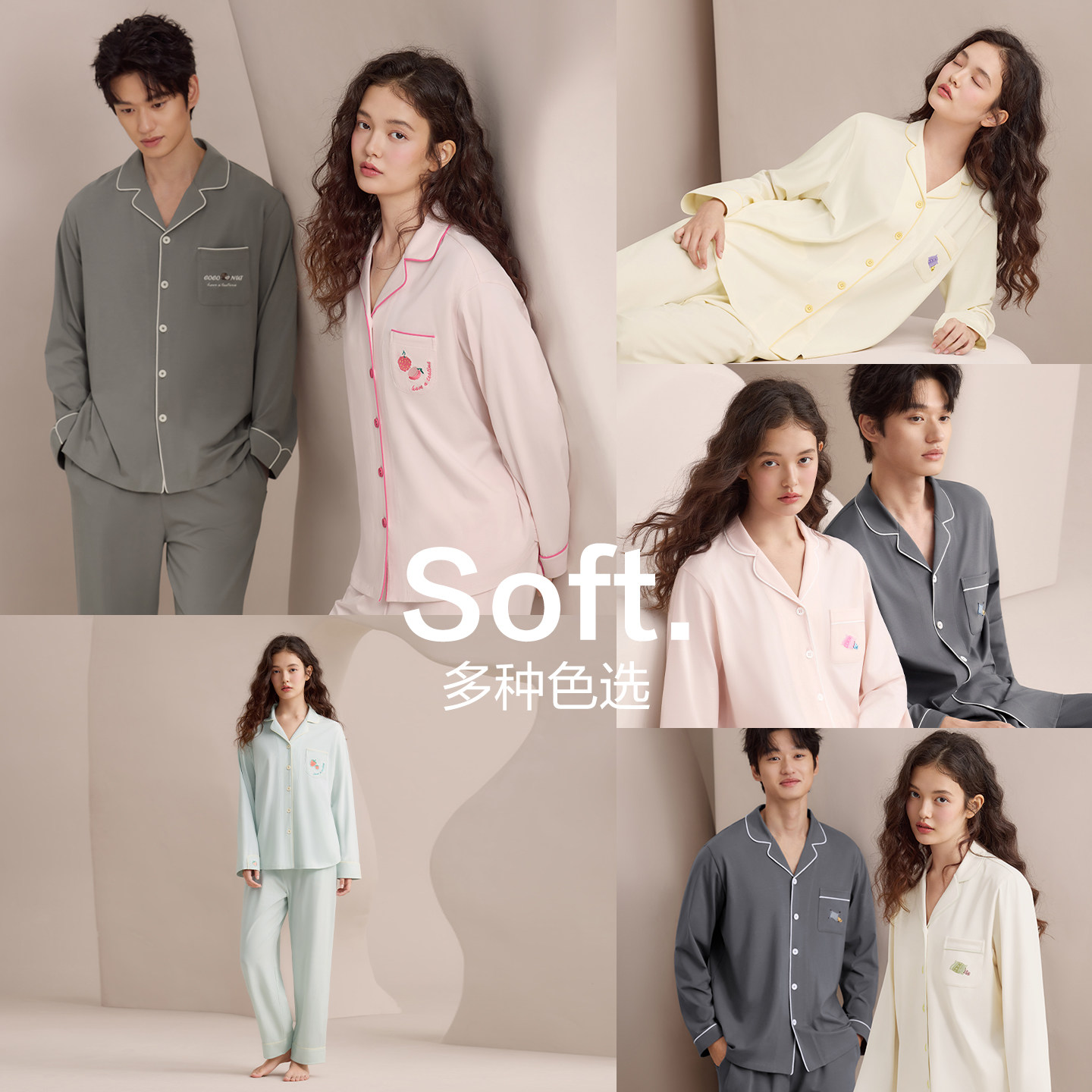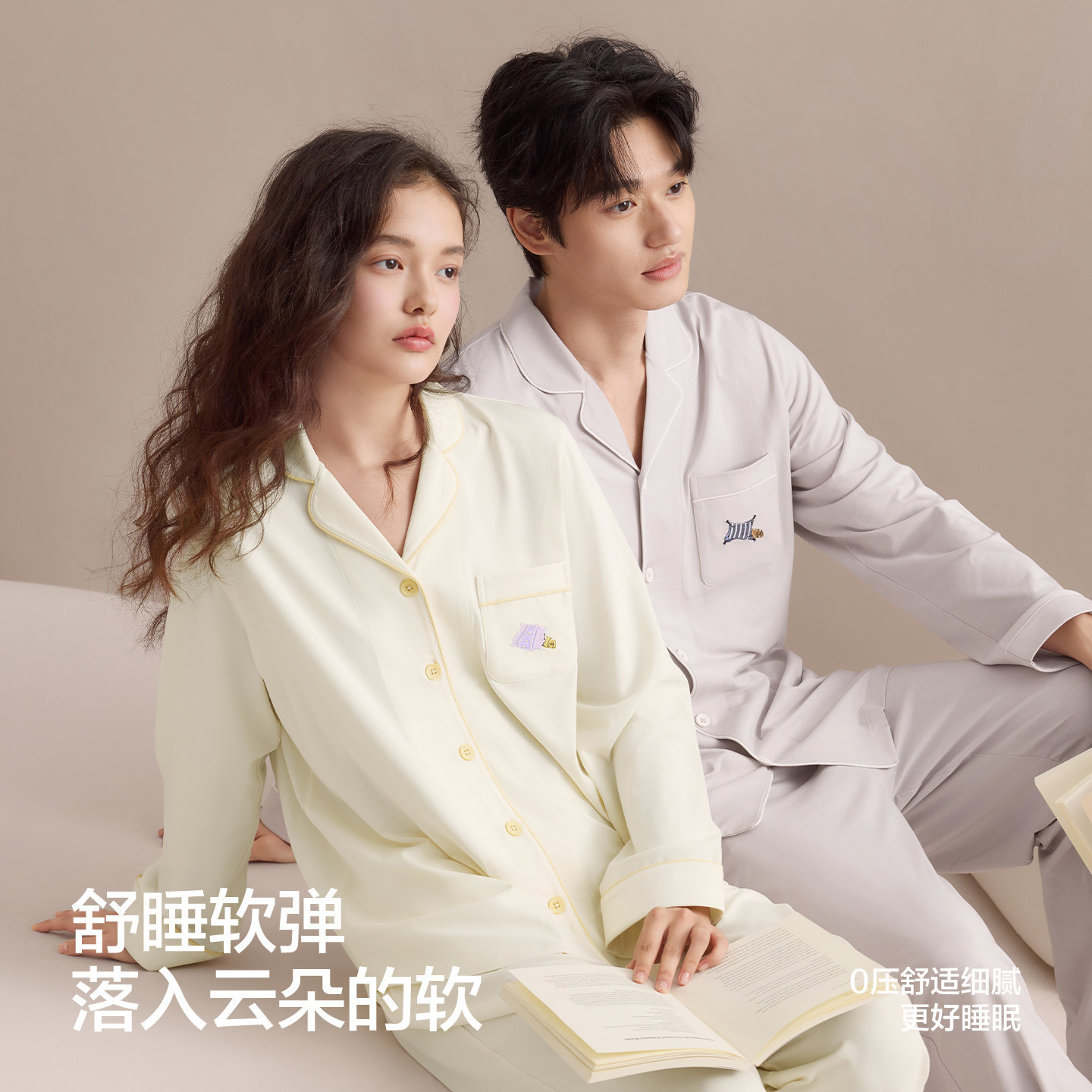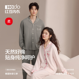 夏带胸垫防螨抗菌A类家居服套装 女春秋新款 男士 红豆纯棉睡衣长袖