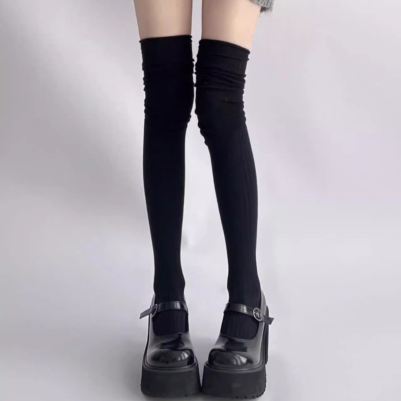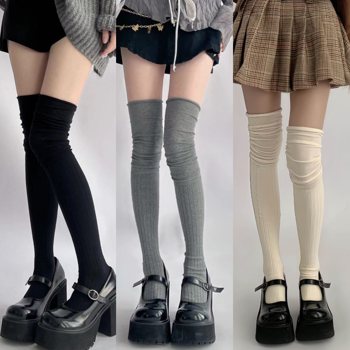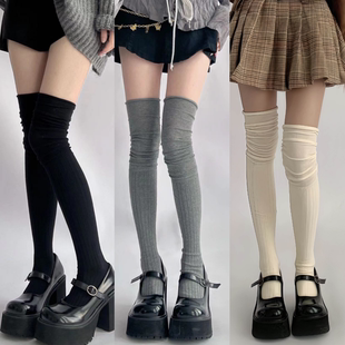 JK长筒袜长腿长袜堆堆袜奶白色过膝袜拼接袜子高筒护膝女春秋靴袜