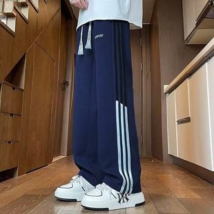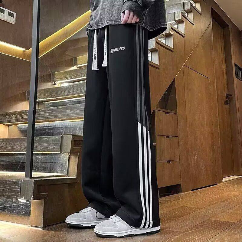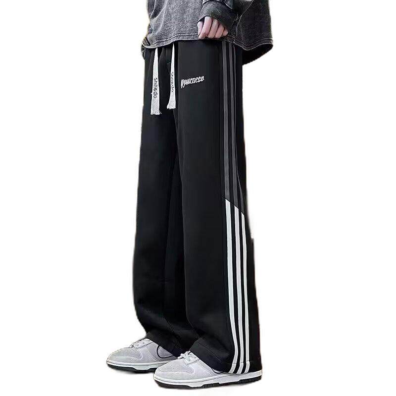 青少年三条杠卫裤 条纹加绒休闲裤 宽松直筒运动裤 2025春秋冬季 男士