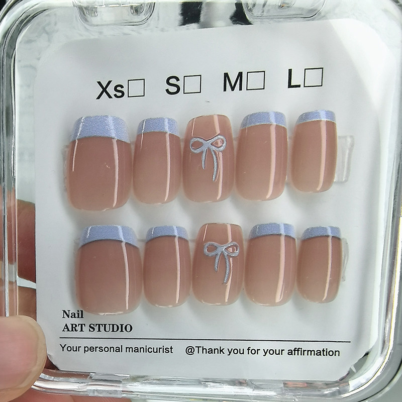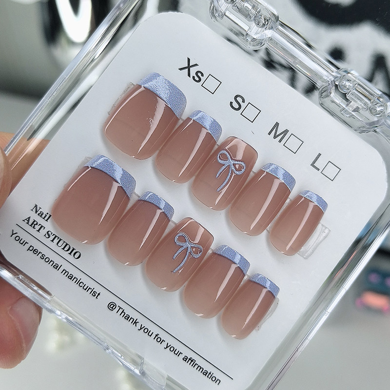 指甲贴片2025新款 蓝边轻奢高级感穿戴甲美甲贴片可拆卸手工甲 法式