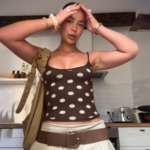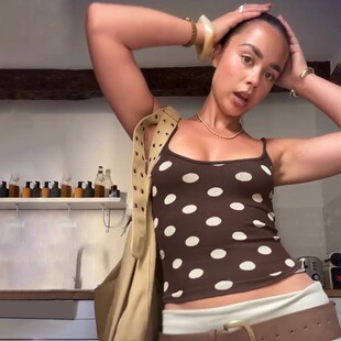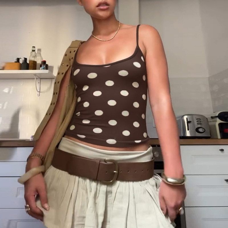 shemoda日常百搭休闲波点印花吊带背心女 短上衣 性感辣妹弹力修身