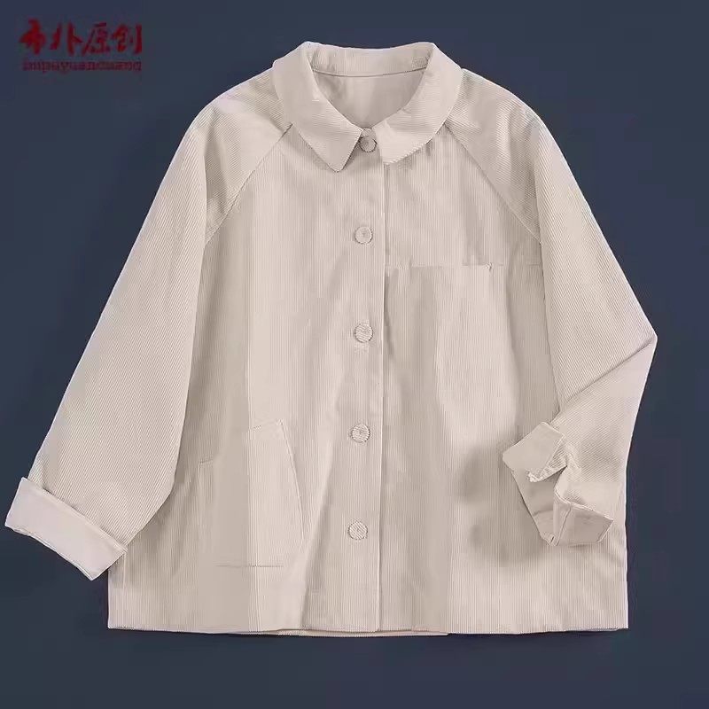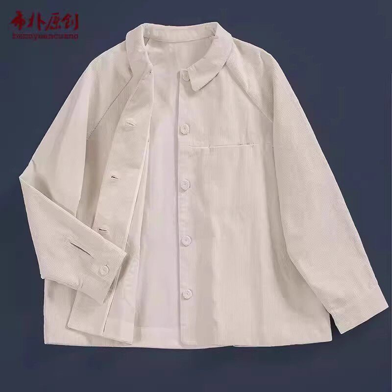 减龄外套女 全棉灯芯绒面料翻领开襟米白长袖 布朴家作2026春季 新款