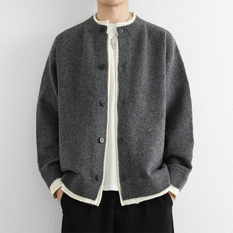URSBOB青年圆领百搭保暖毛衣潮春秋男士 外套休闲宽松 针织开衫