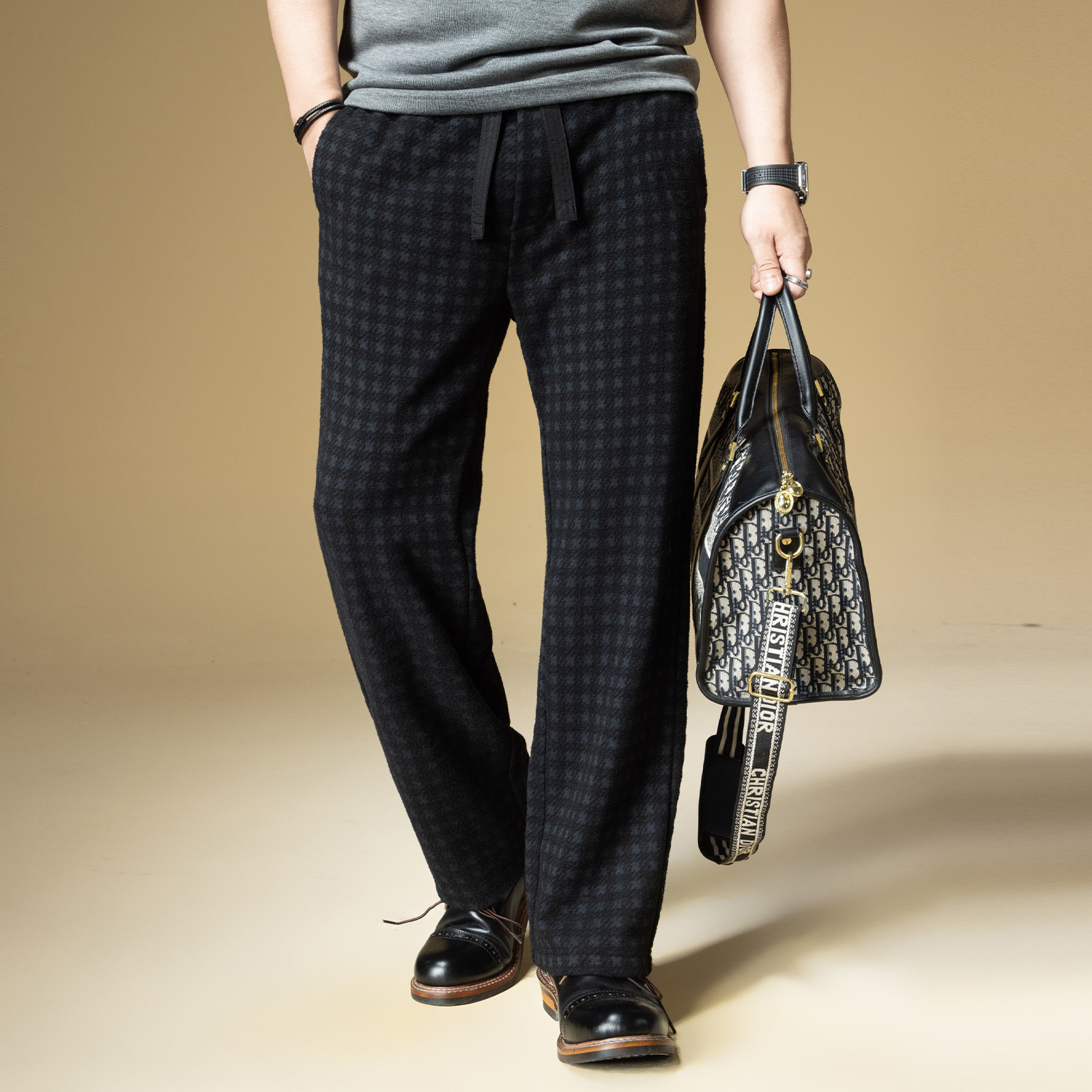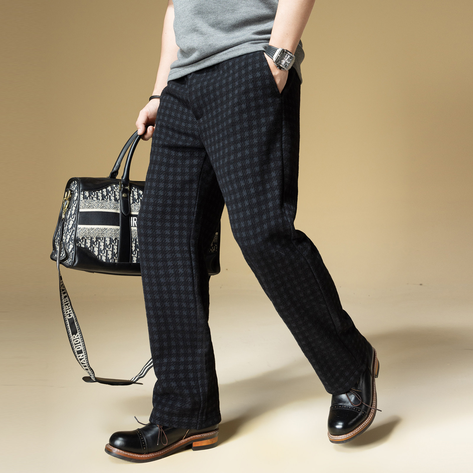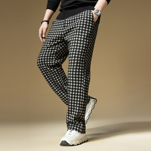 高端休闲裤 宽松秋季 2025新款 子男潮牌复古千鸟格子直筒裤 裤 BM男士