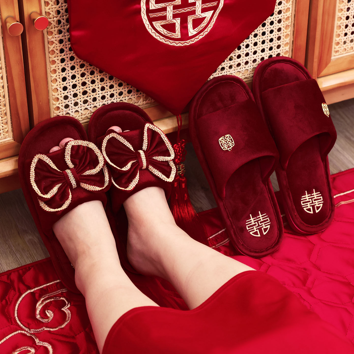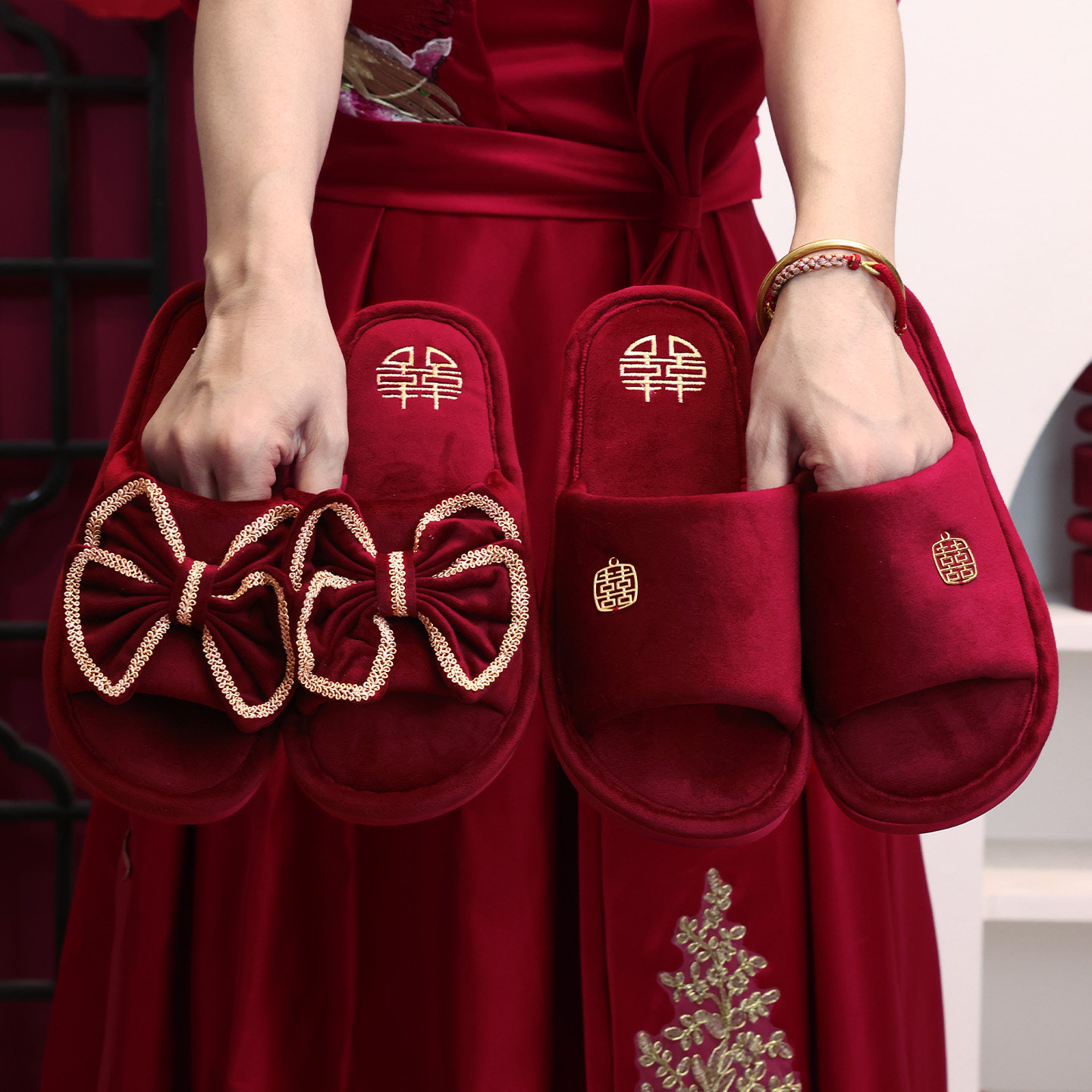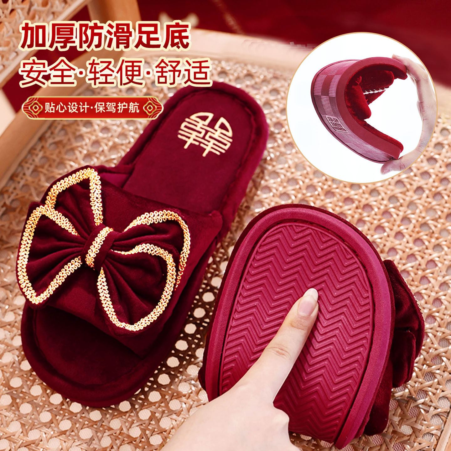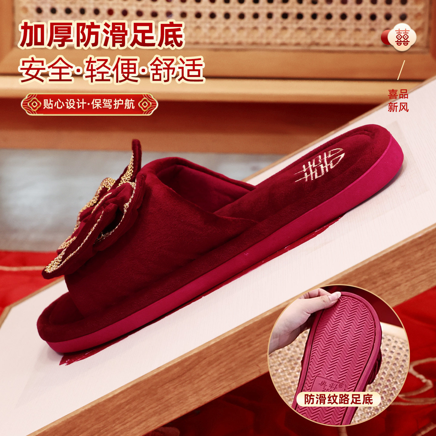 结婚红色喜字拖鞋 一对情侣喜庆喜托新婚情侣婚庆用品新娘陪嫁物品