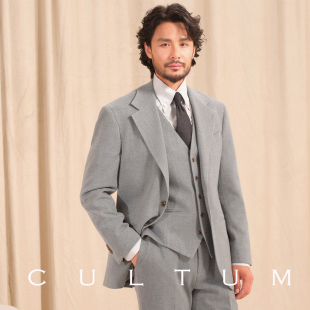 易打理西服套装 CULTUM秋冬商务通勤人字纹磨毛男装 免烫法兰绒