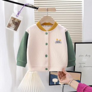 男童棒球服上衣春秋宝宝时尚 女童洋气针织衫 外套 儿童棉质开衫 新款