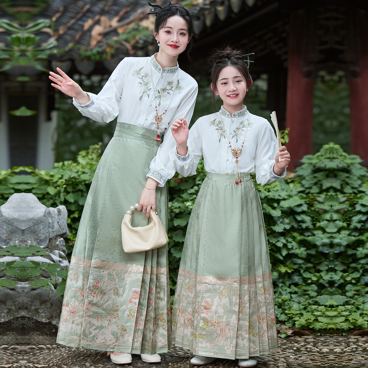 马面裙套装 汉服女童秋装 中大童国风新中式 2025新款 儿童 母女亲子装