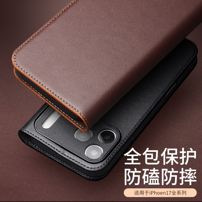 洽利 适用于苹果17promax手机壳iphone17保护套Air真皮翻盖全包插卡支架防摔商务皮套男女款