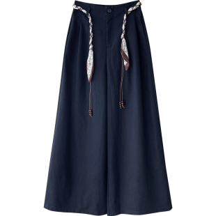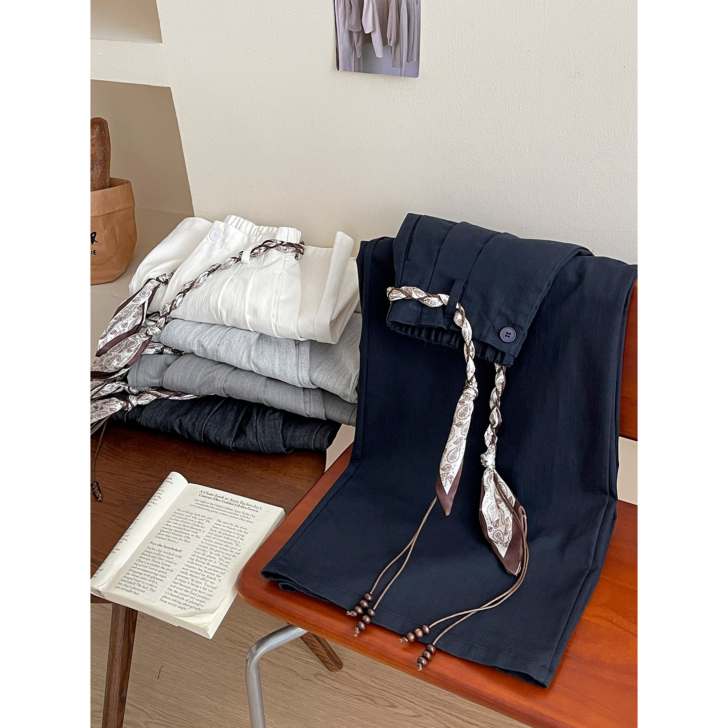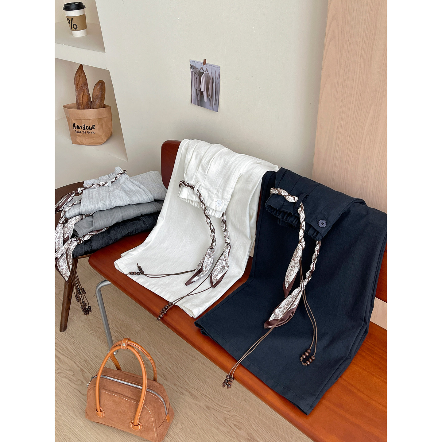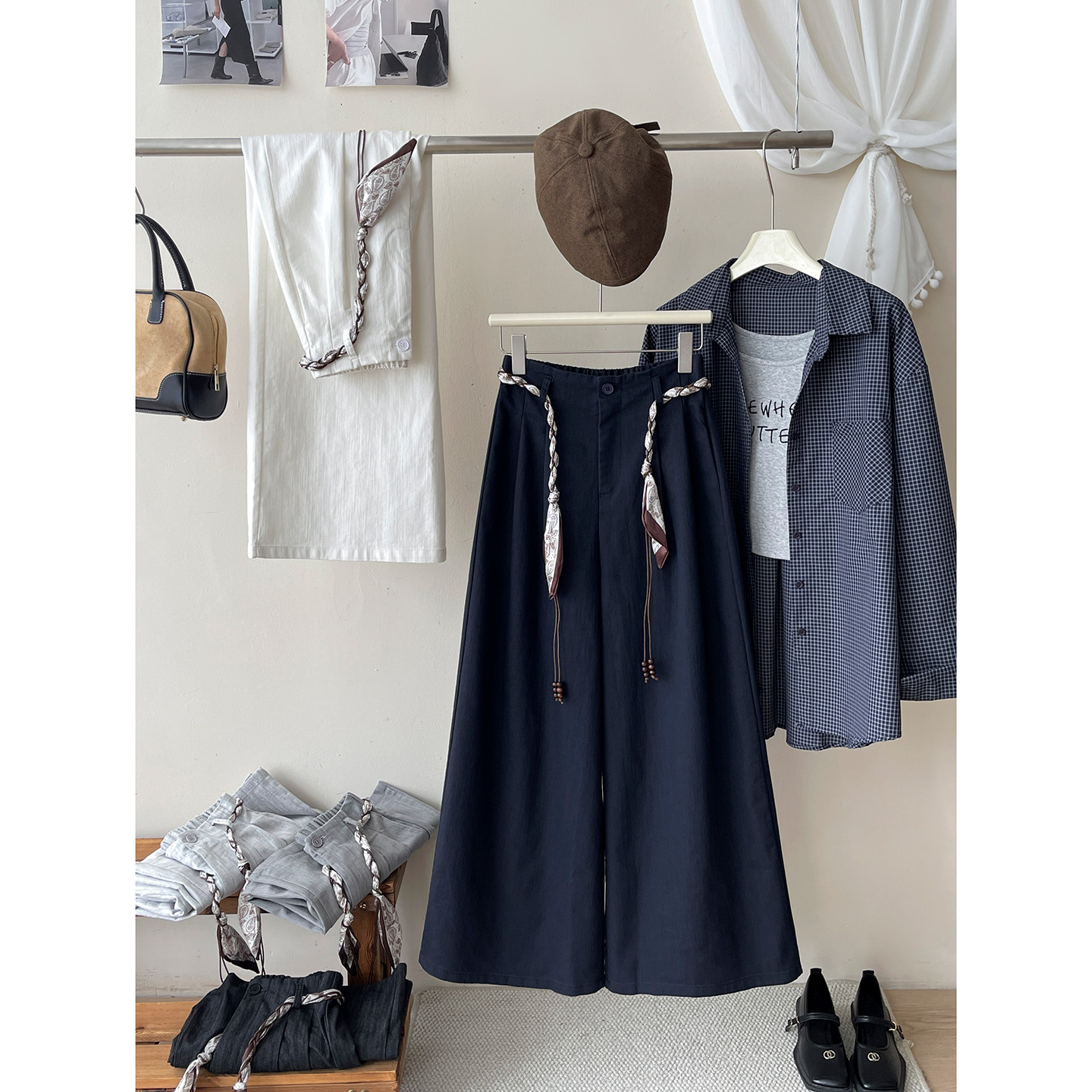 子 女春松弛感慵懒风休闲裤 法式 复古老钱风丝巾编织腰带山本阔腿裤