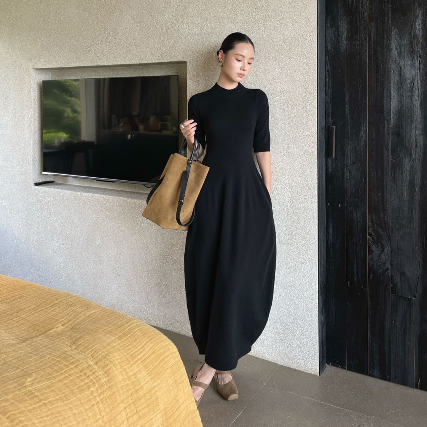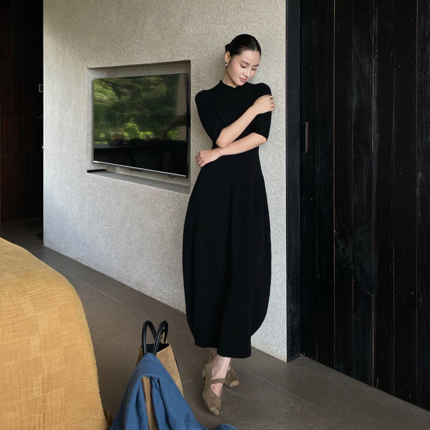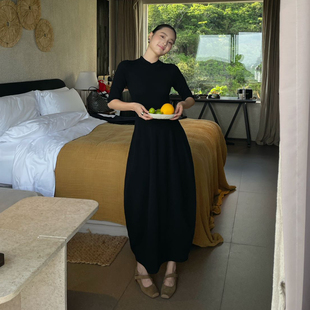显瘦 花苞连衣裙小众气质羊毛裙收腰长裙修身 PURITYYH韩版 针织长款