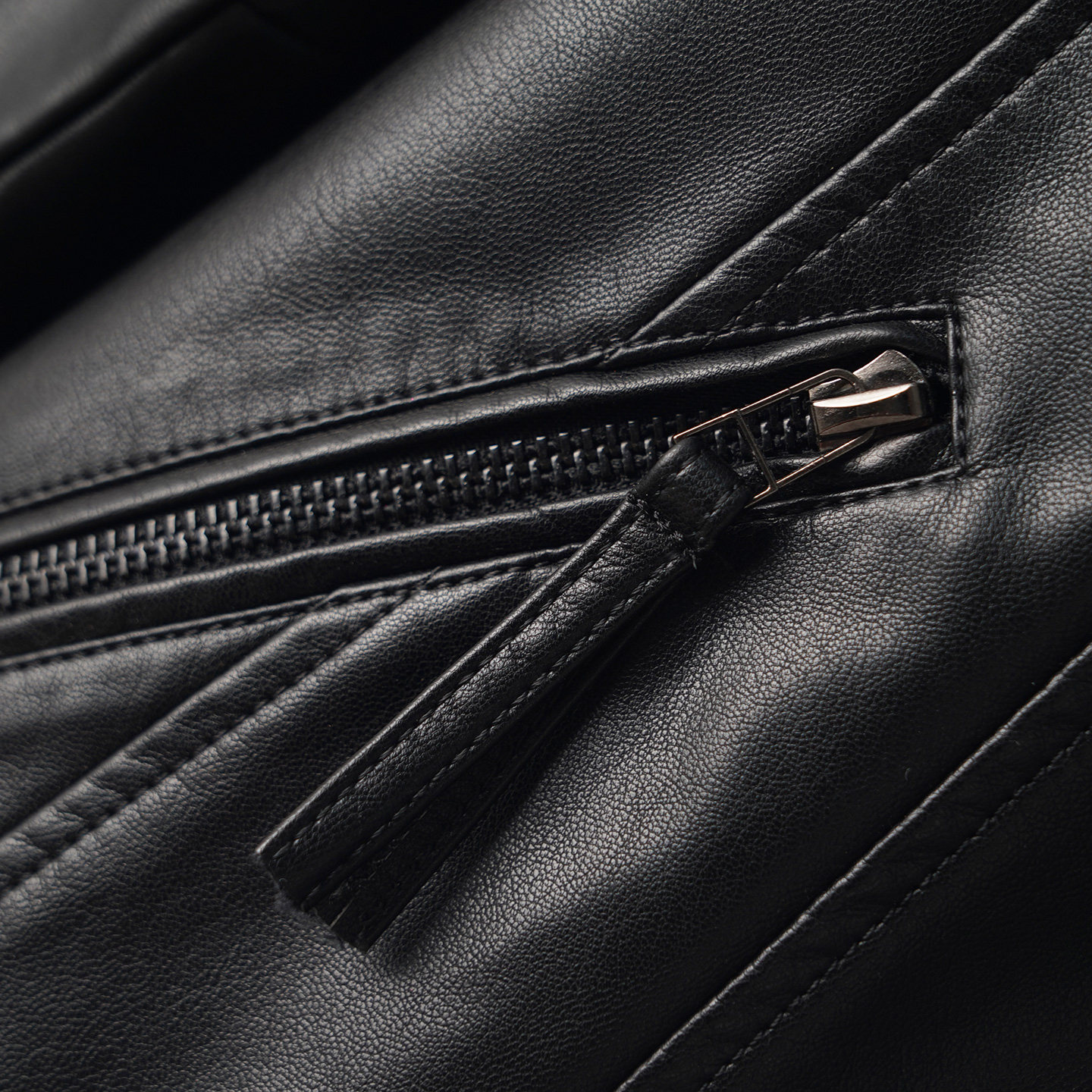蜡感硬挺皮料 JCAESAR 异形领按扣皮衣 JACKET 下摆开叉 LEATHER
