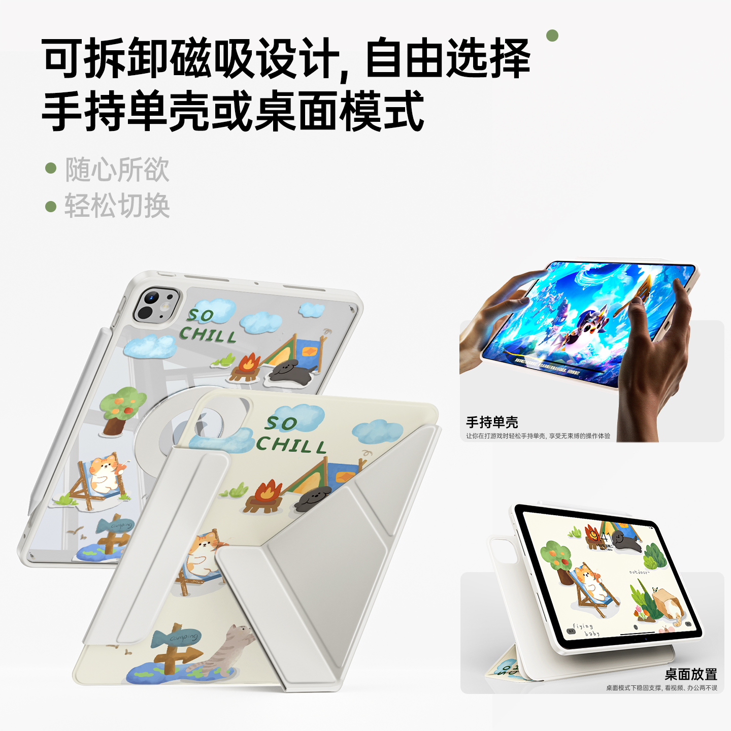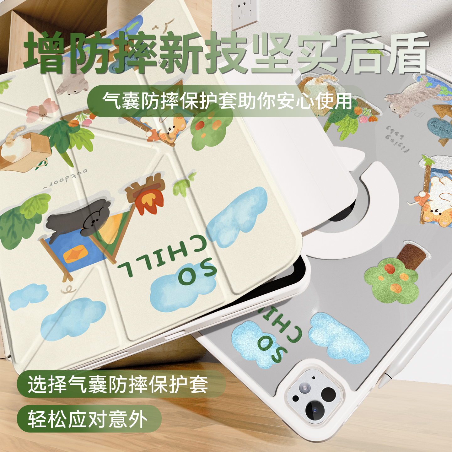 iPad11保护套2025款 iPadpro磁吸拆分720°旋转air7支架6适用苹果10代9平板5保护壳mini7防摔透明13寸12.9可爱