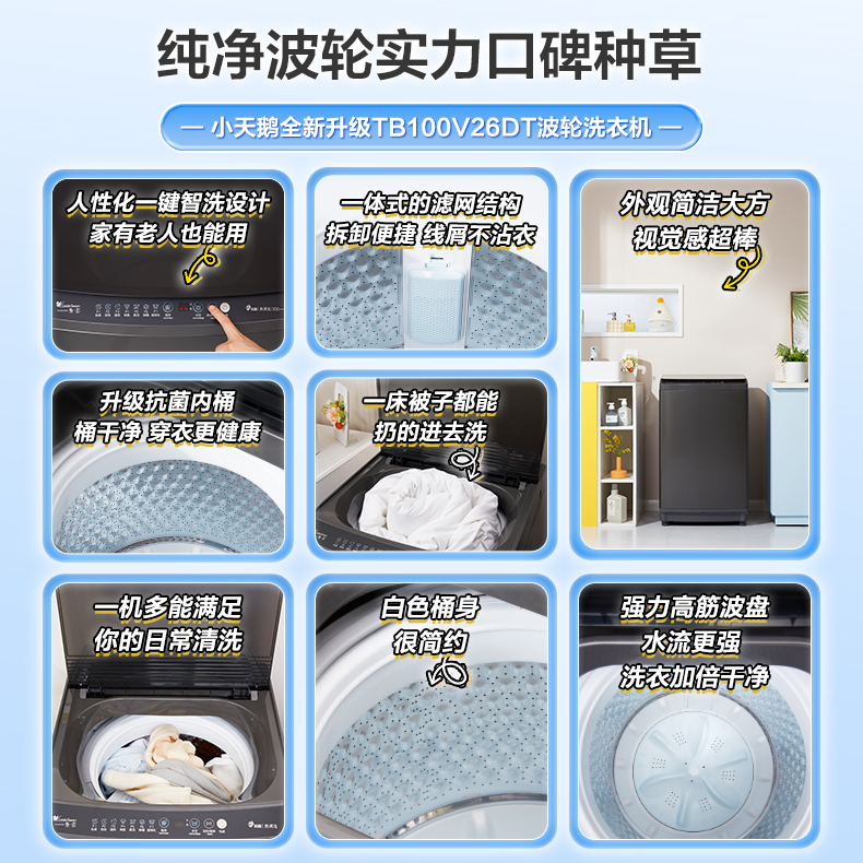 小天鹅12KG水魔方波轮全自动大容量变频洗脱一体洗衣机白色20DW
