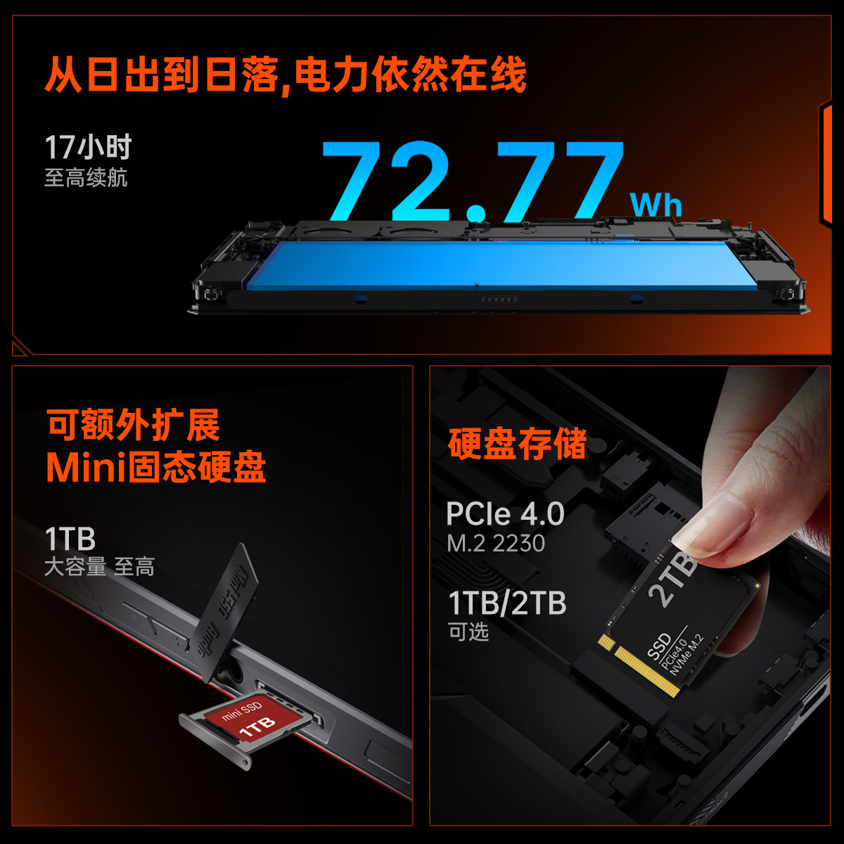 10.95英寸2.5K可拆卸手柄游戏掌机 258V 壹号本OneXPlayer游侠X1Air 三合一平板笔记本电脑英特尔酷睿Ultra7